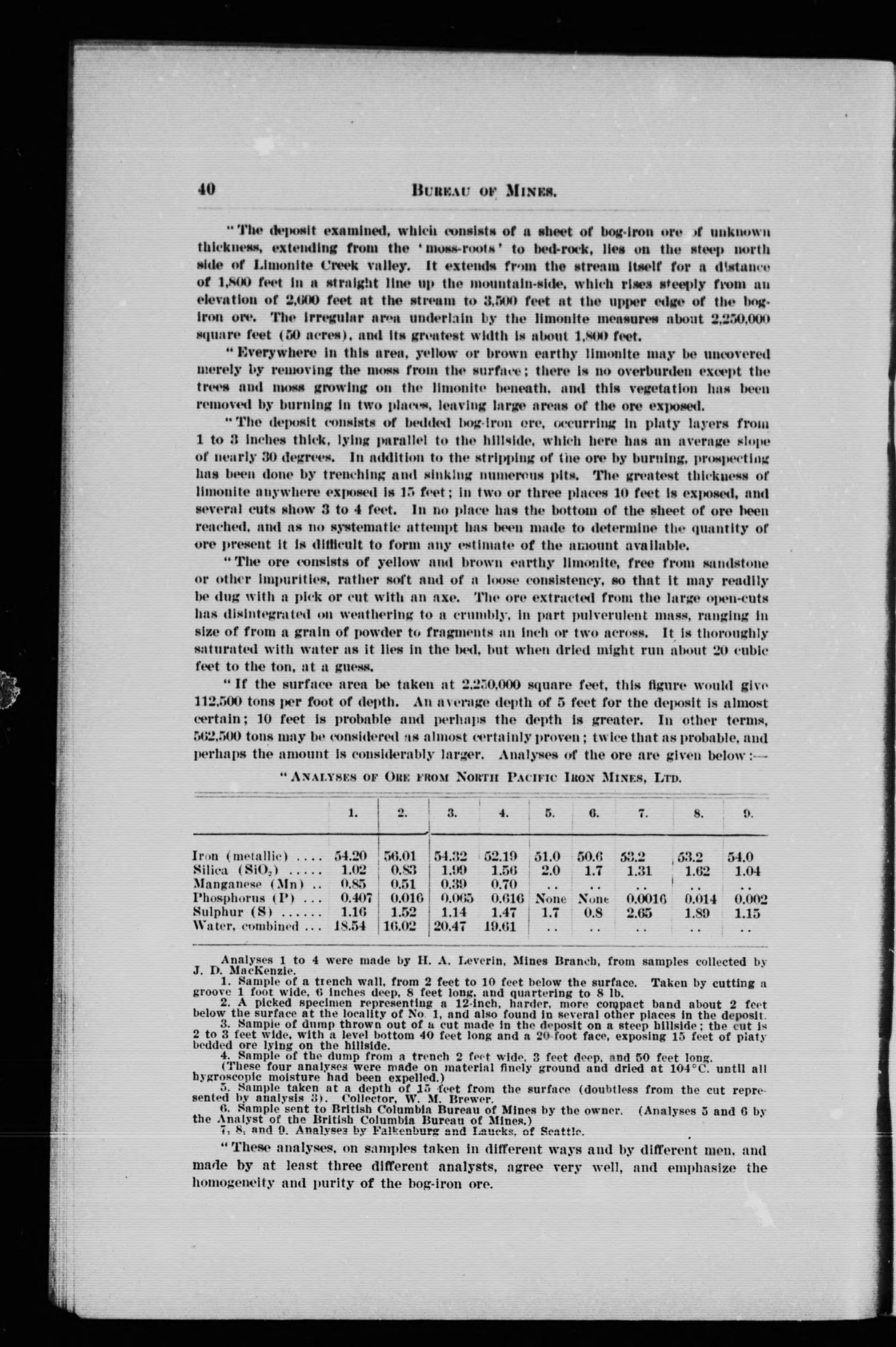 Bureau of Mines report on iron-ore deposits of Vancouver and Texada Islands /