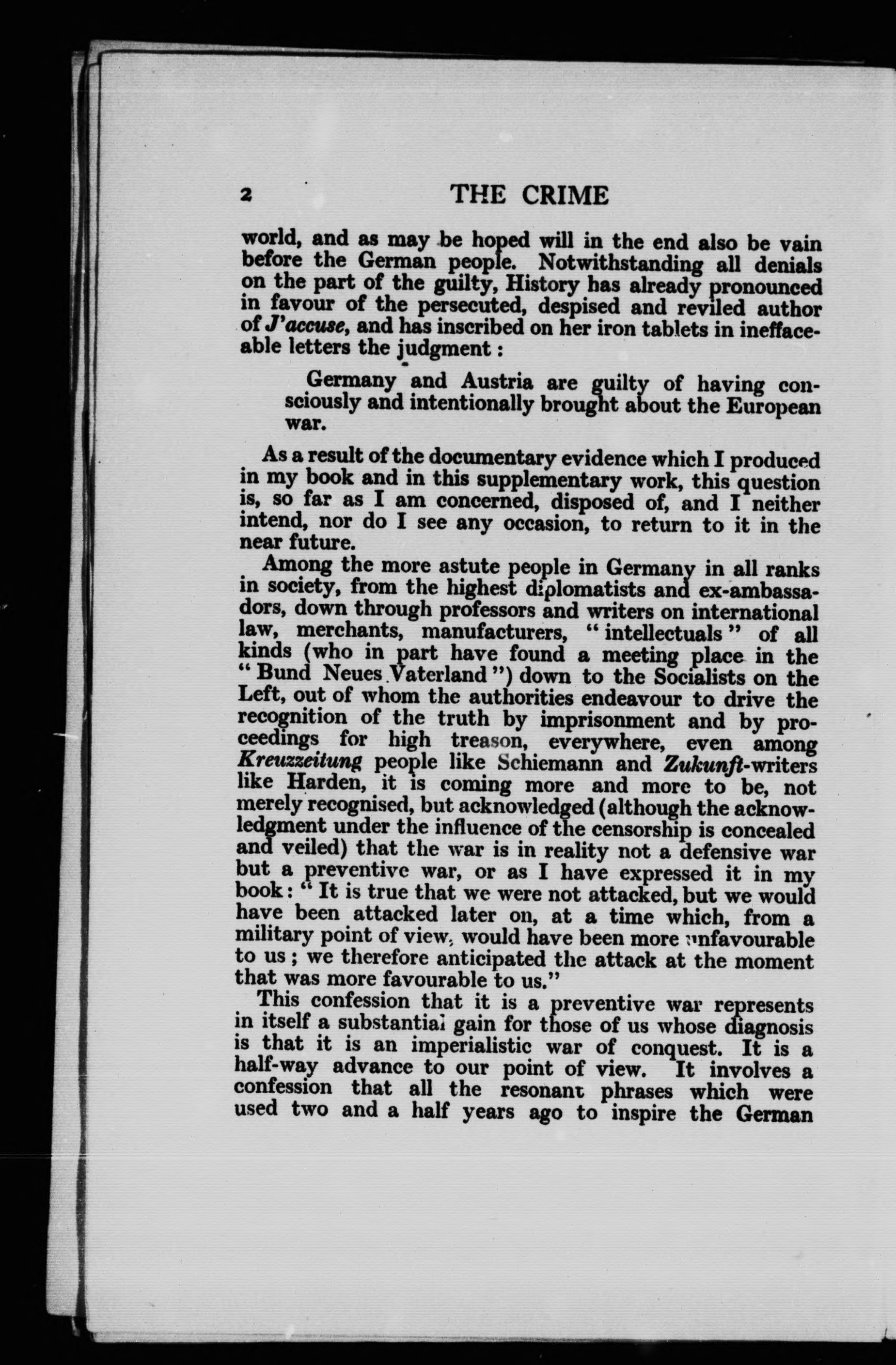 "In the course of publication it has been found necessary to publish in two volumes what had originally been intended to form the second volume of The Crime. The third volume will comprise the section on War-Aims, and references to the various chapters in that section must now be interpreted as referrring to the third volume"--page [iv]