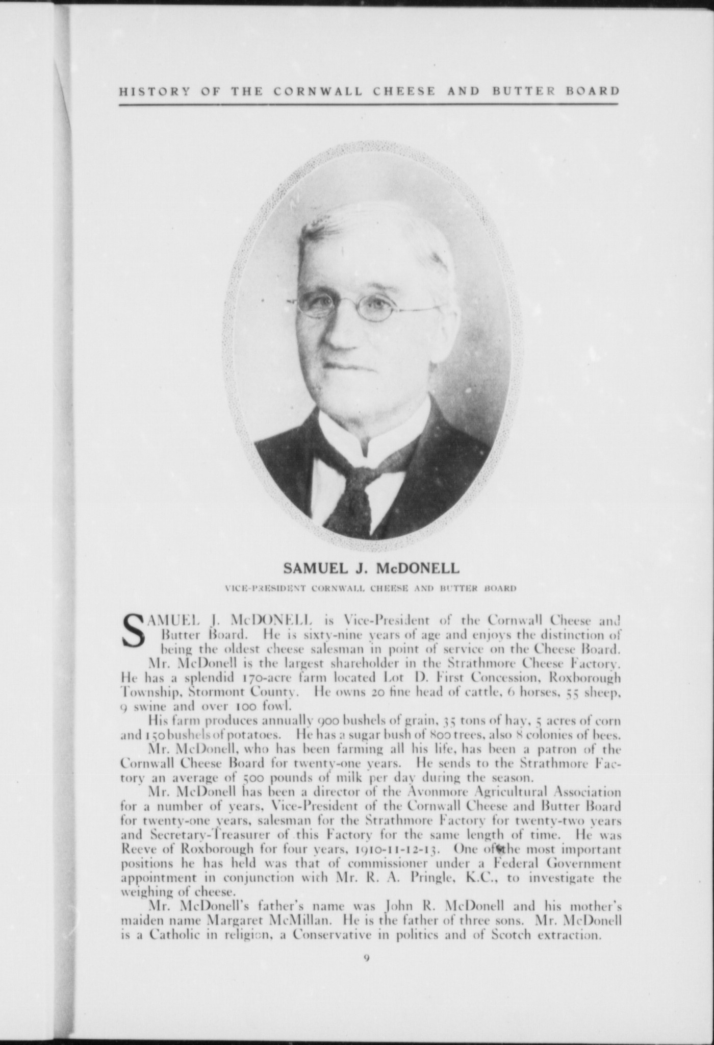 Official history of the Cornwall Cheese and Butter Board : an historical, biographical and descriptive account of the dairying industry in the Cornwall district, with specially written articles by prominent dairying experts