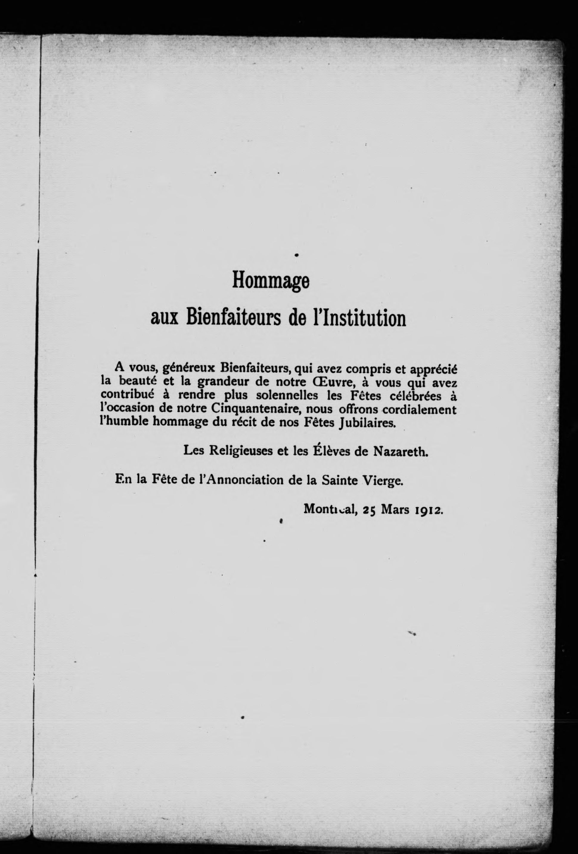 Page de titre supplémentaire: Cinquantenaire de l'Institution des jeunes aveugles de Nazareth.