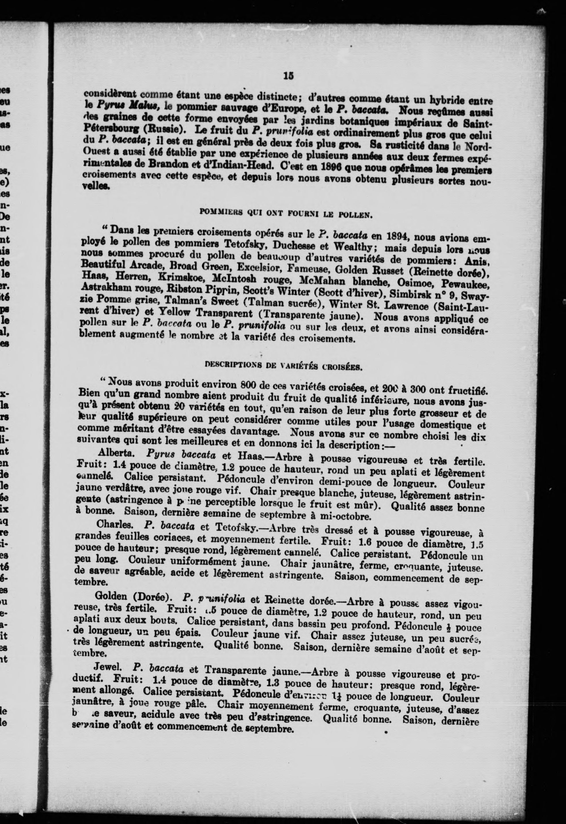 Culture du pommier : listes de pommiers pour districts de l'Ontario et de Québec : descriptions de variétés - Adresse bibliographique