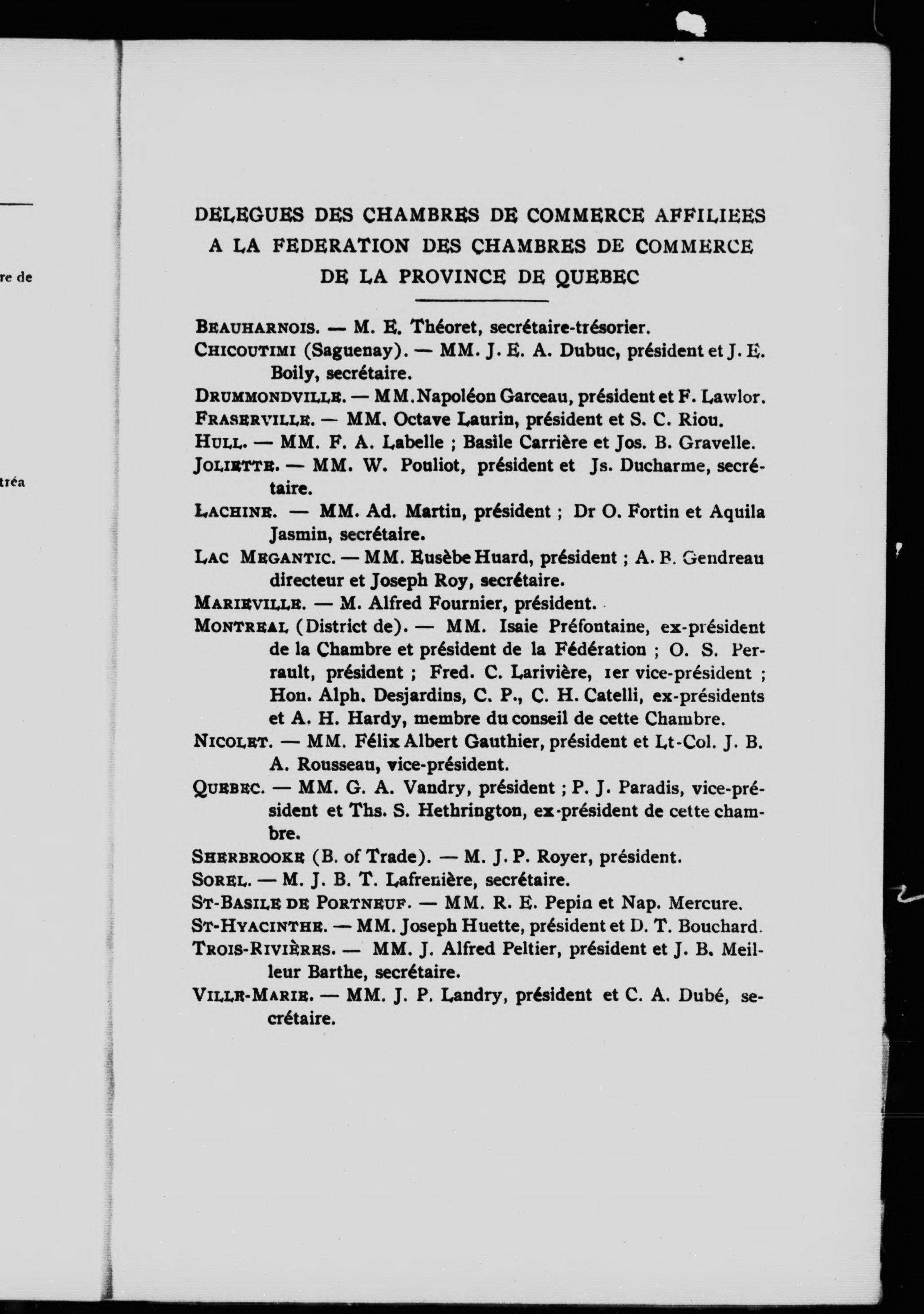 Deuxième réunion de la Fédération des Chambres de commerce de la province de Québec :