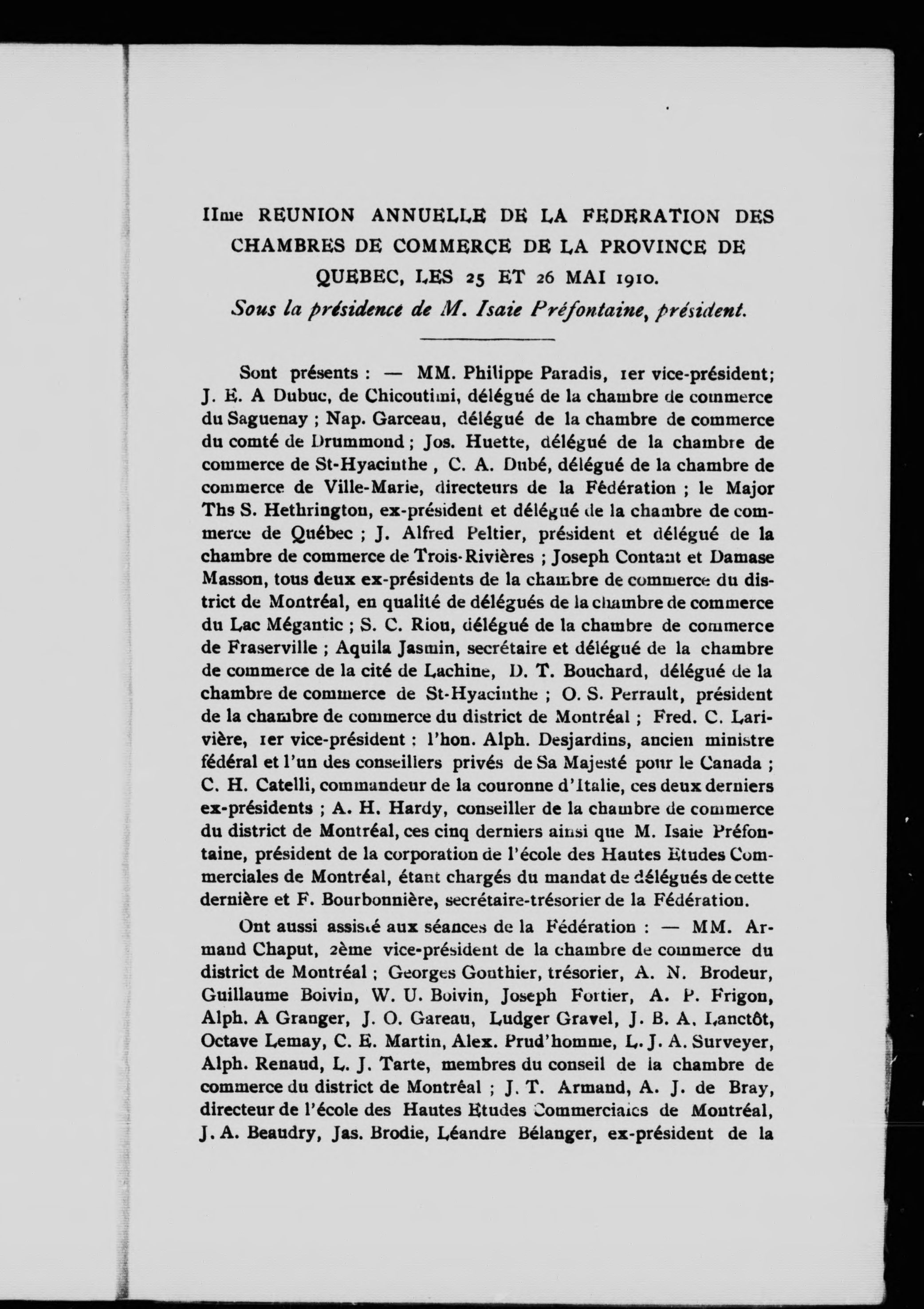 Deuxième réunion de la Fédération des Chambres de commerce de la province de Québec :