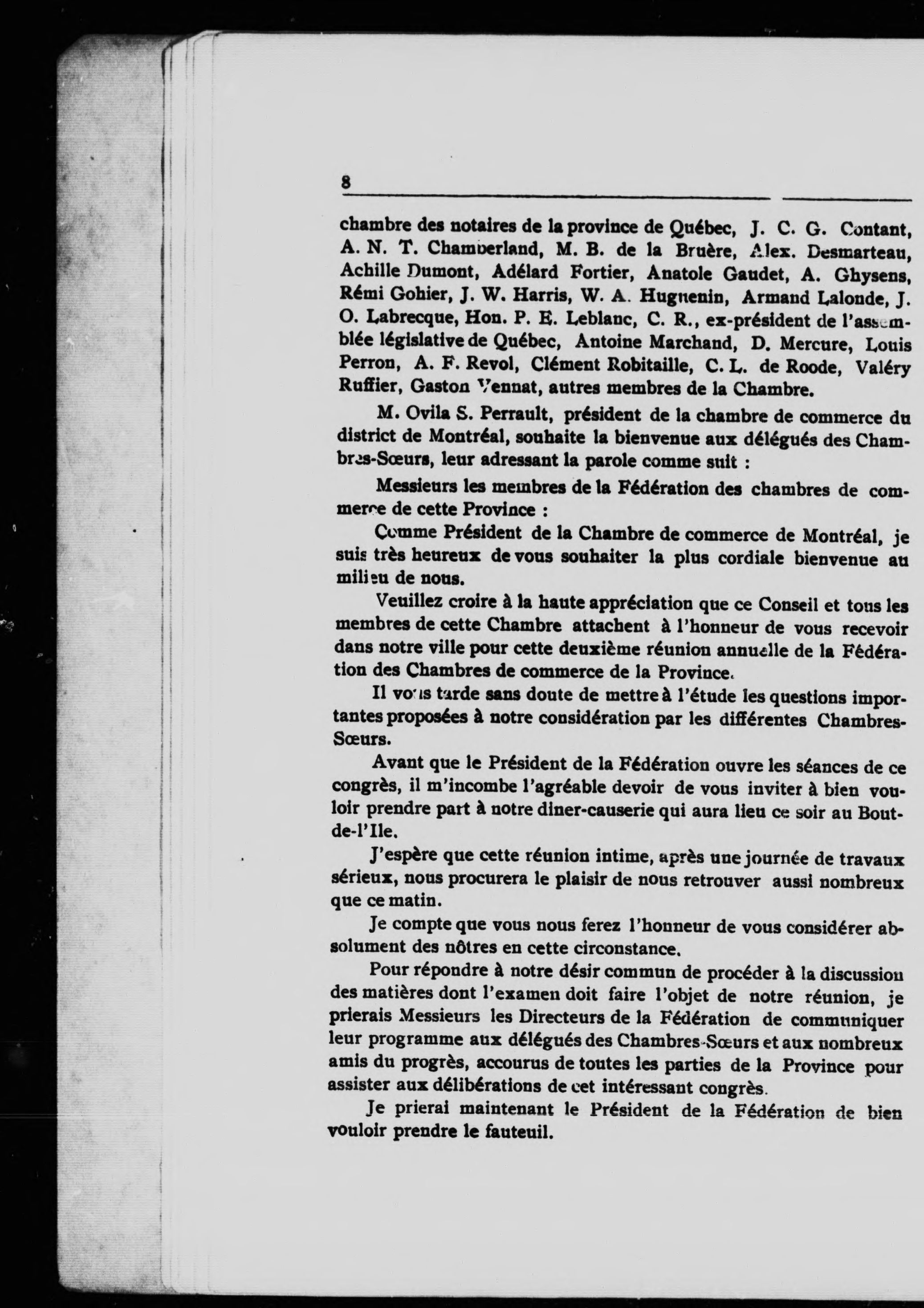 Deuxième réunion de la Fédération des Chambres de commerce de la province de Québec :