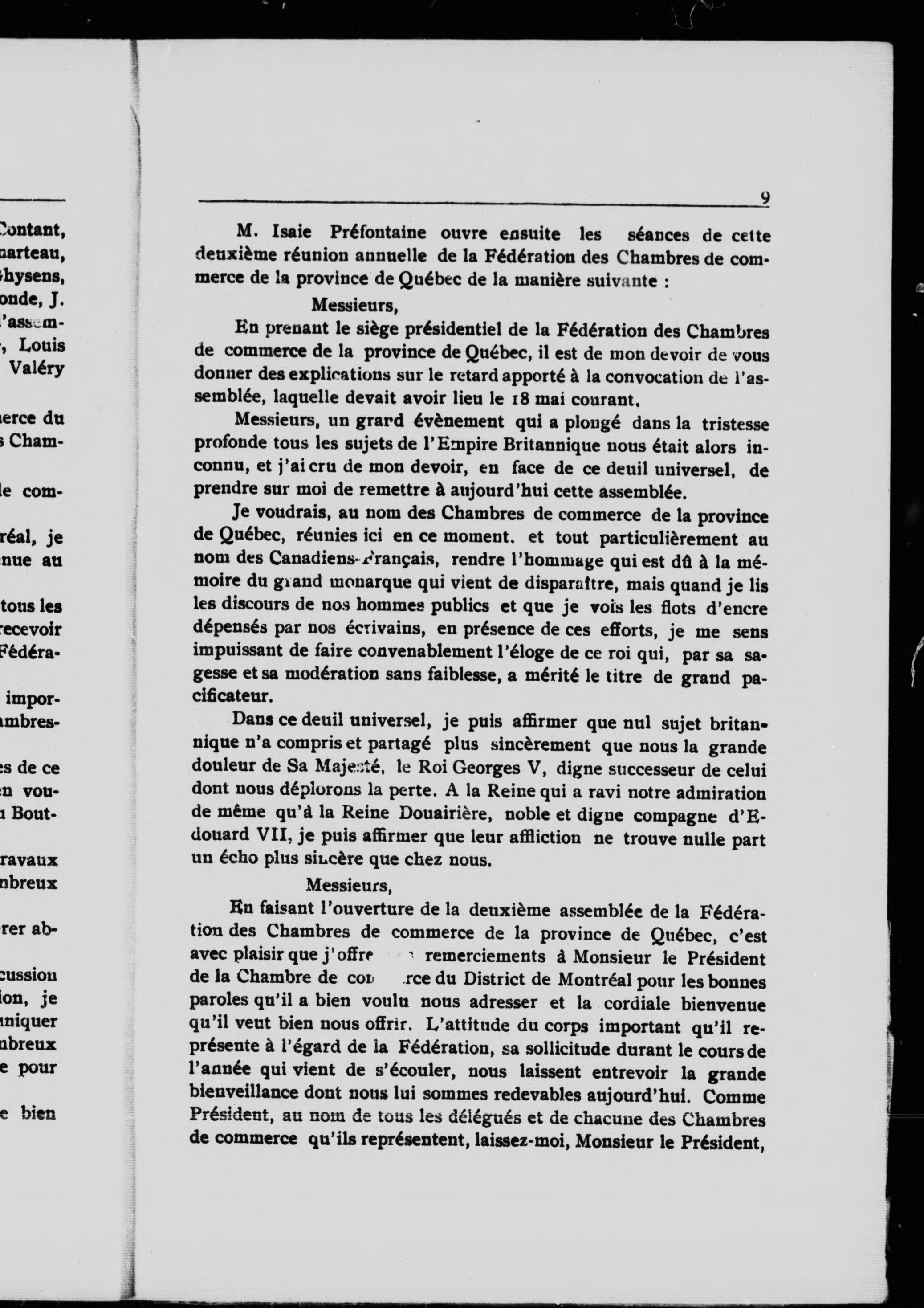 Deuxième réunion de la Fédération des Chambres de commerce de la province de Québec :