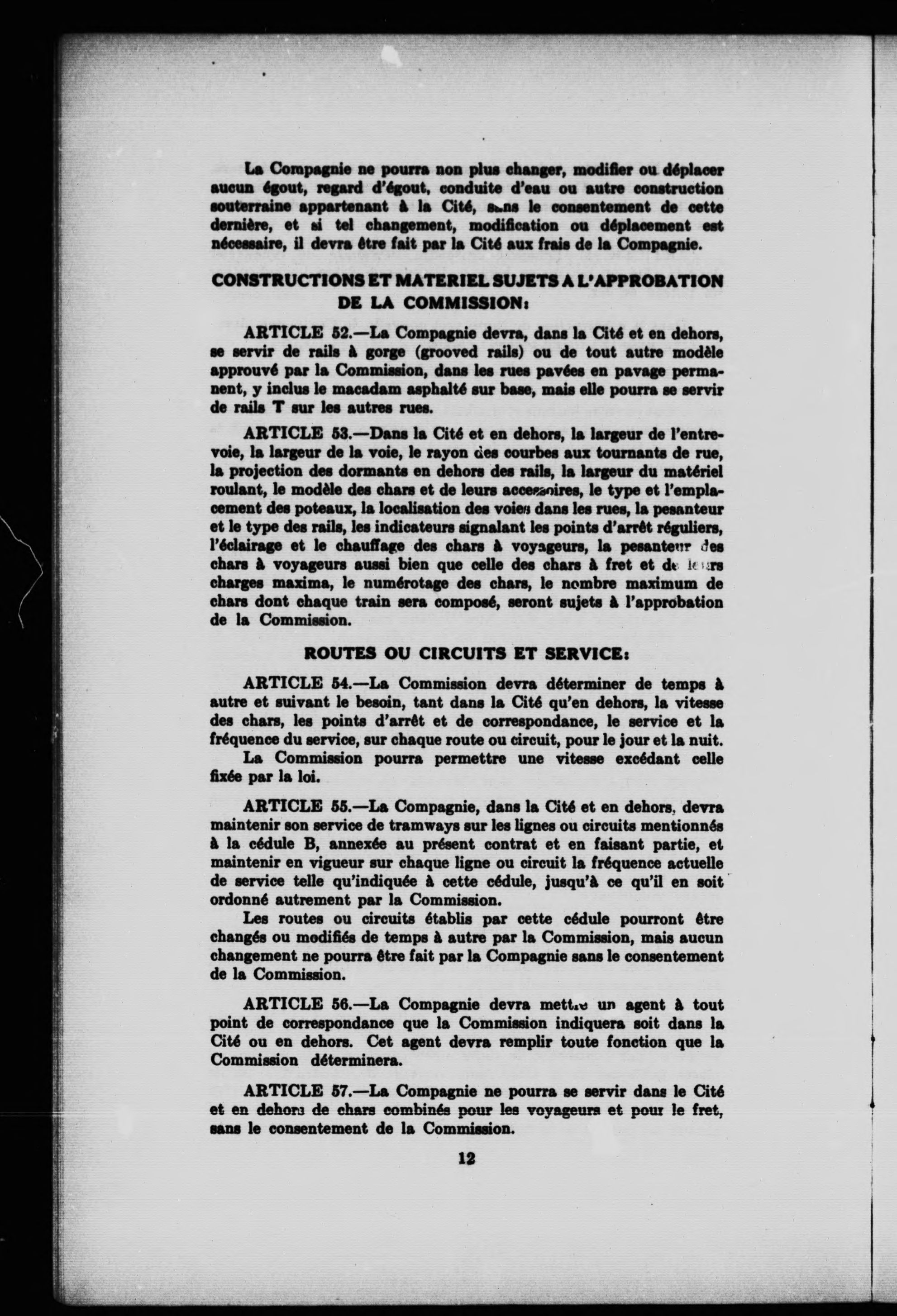Texte du contrat entre la cité de Montréal et la Compagnie des tramways de Montréal.