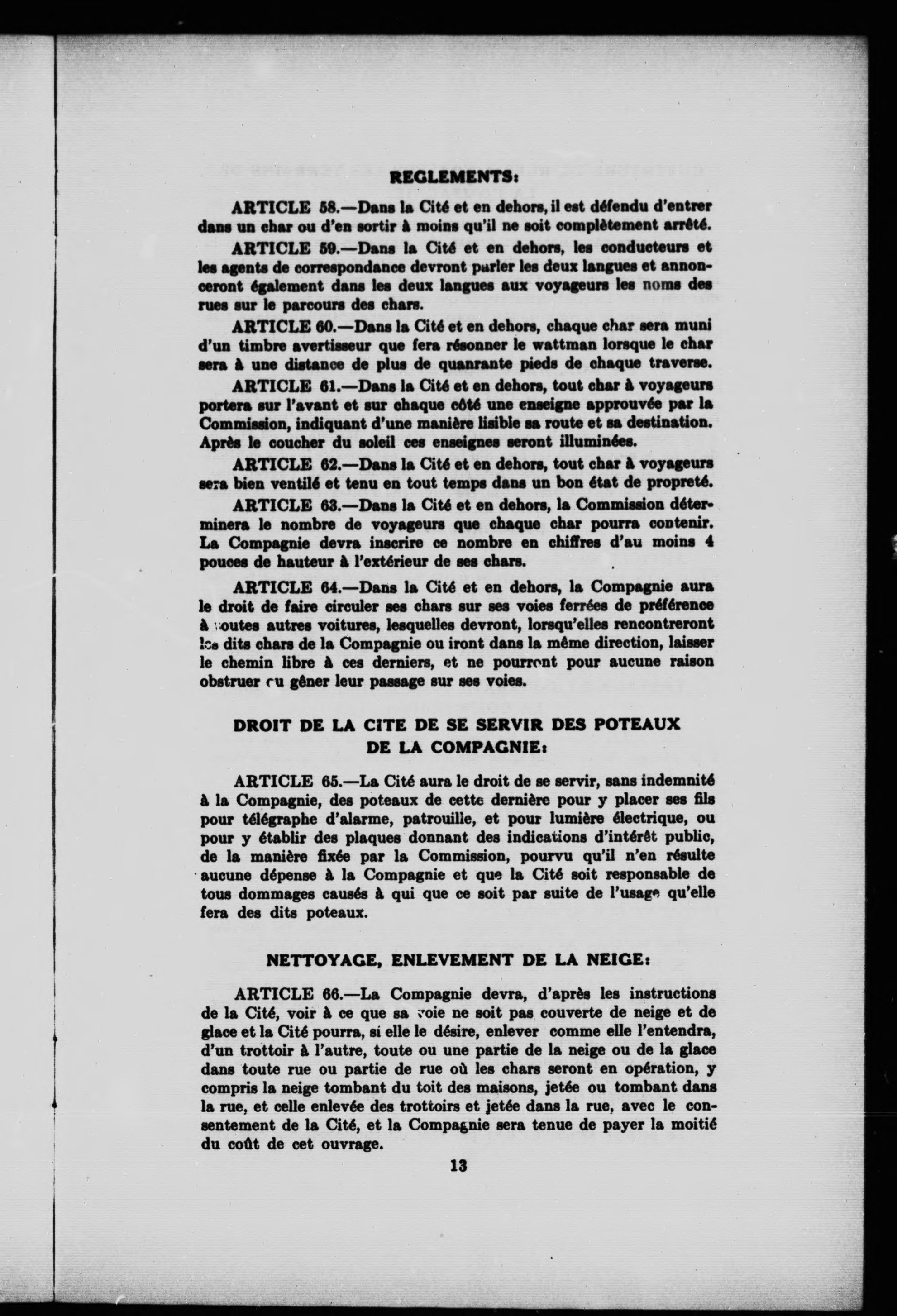 Texte du contrat entre la cité de Montréal et la Compagnie des tramways de Montréal.