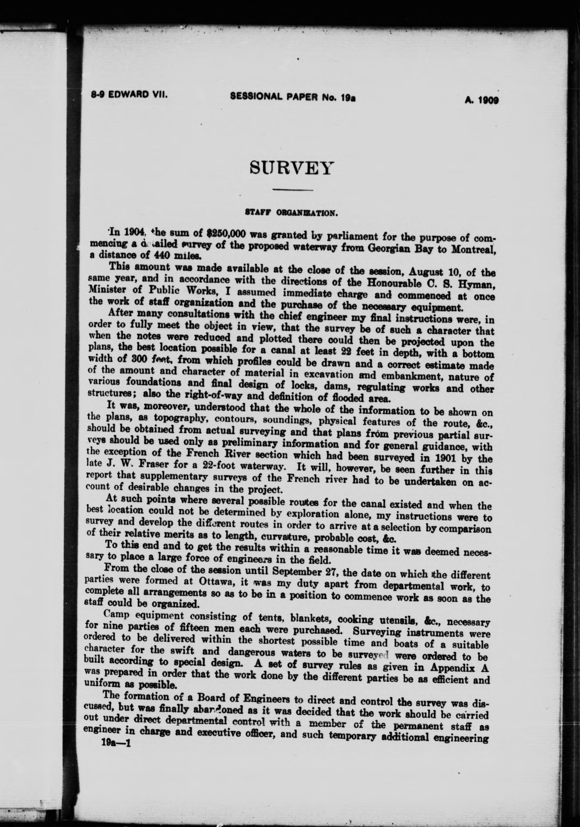 At head of title: 8-9 Edward VII. Sessional paper No. 19a. A.1909. Department of Public Works, Canada.