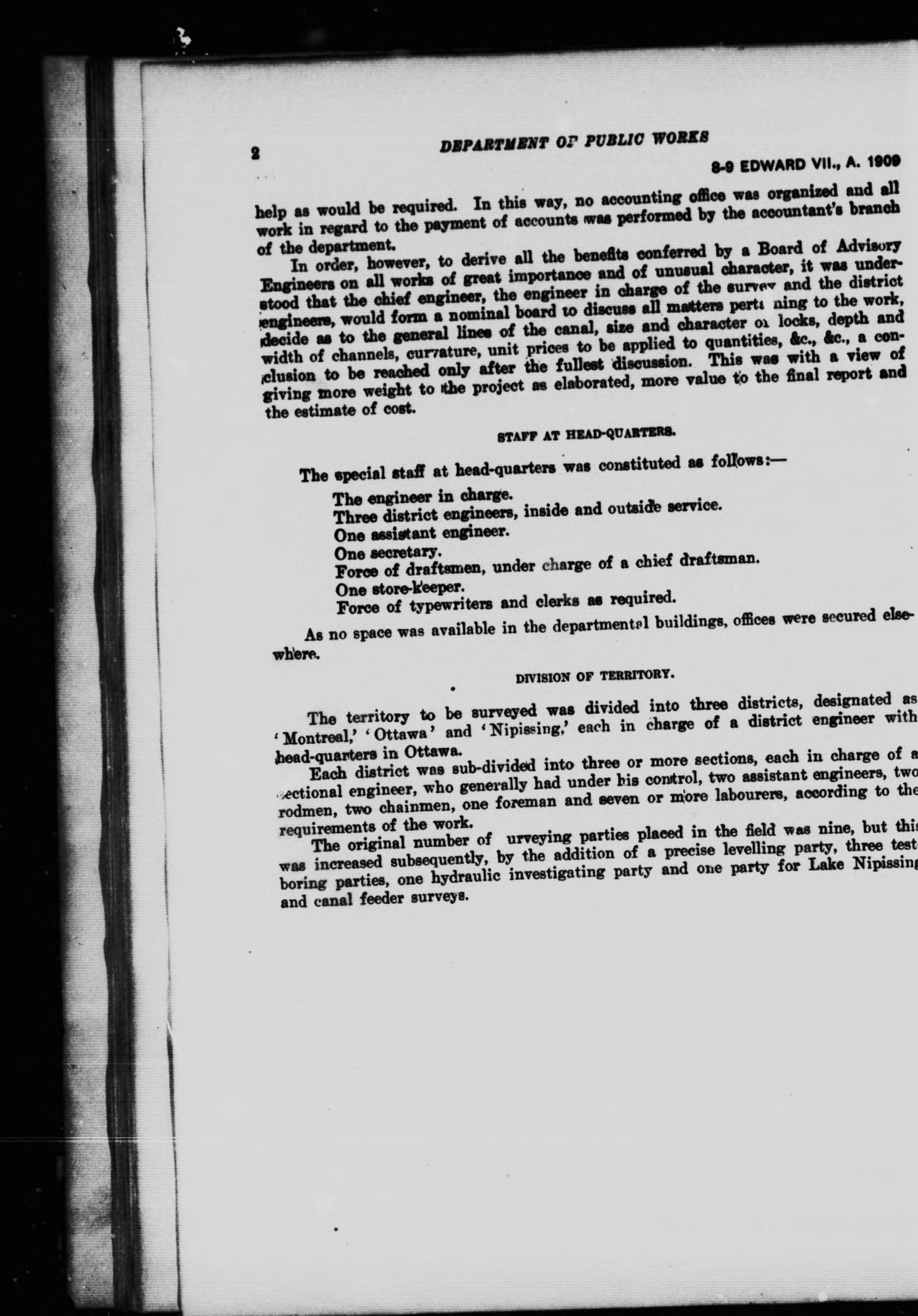 At head of title: 8-9 Edward VII. Sessional paper No. 19a. A.1909. Department of Public Works, Canada.