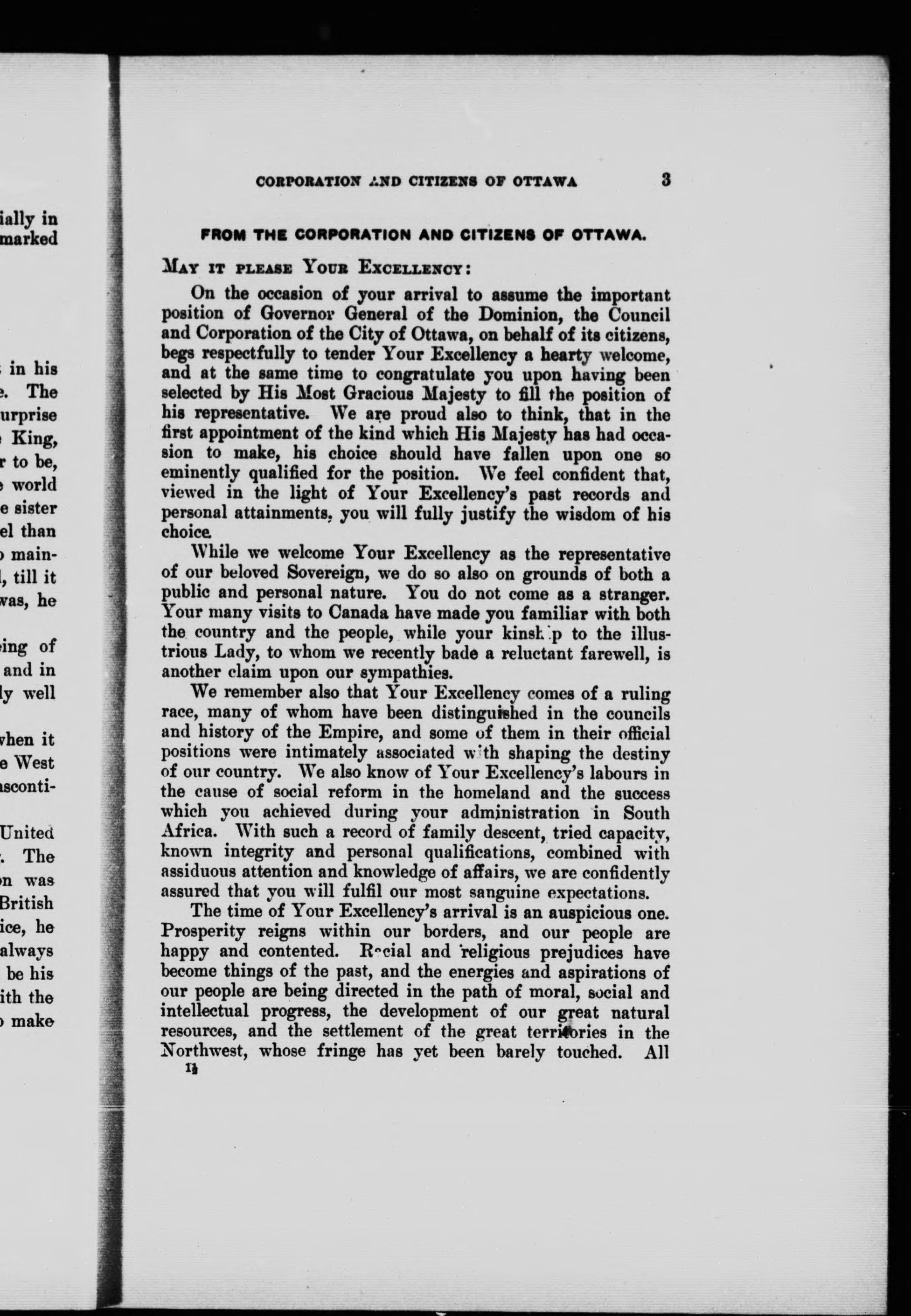 Addresses to His Excellency Earl Grey, G.C.M.G., etc., Governor General of Canada, and his speeches in reply having relation to the resources and progress of the Dominion