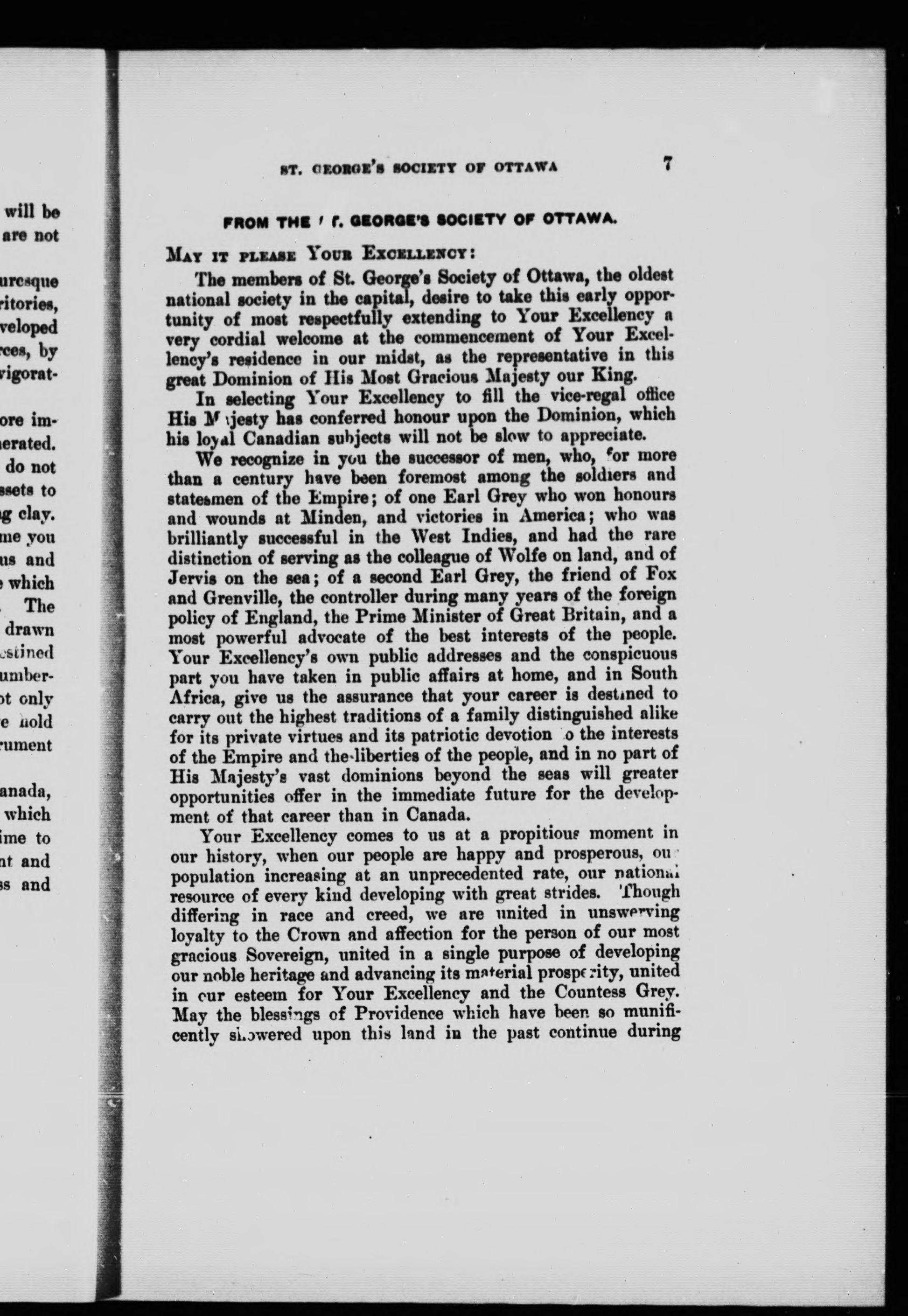 Addresses to His Excellency Earl Grey, G.C.M.G., etc., Governor General of Canada, and his speeches in reply having relation to the resources and progress of the Dominion