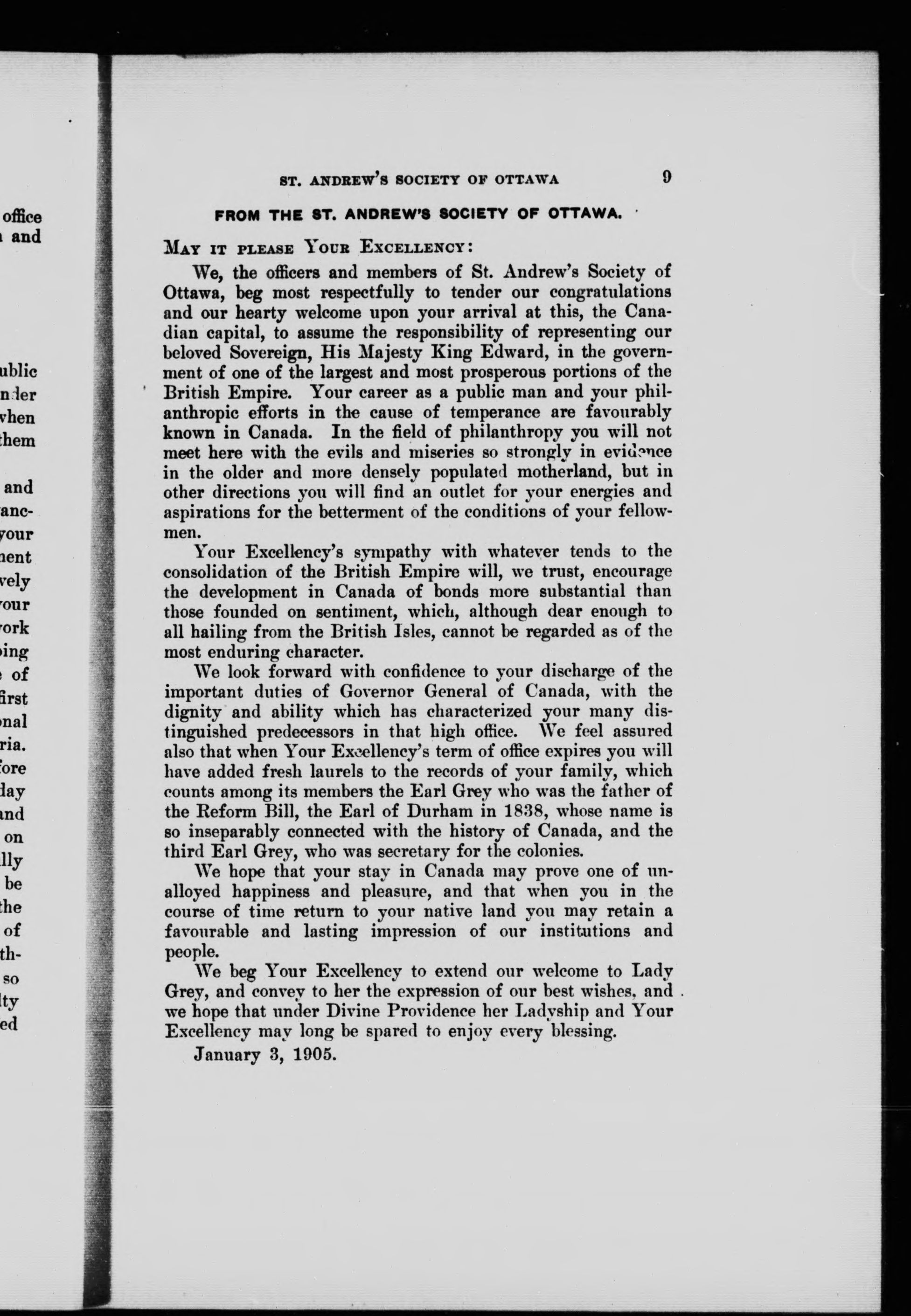 - Addresses to His Excellency Earl Grey, G.C.M.G., etc., Governor General of Canada, and his speeches in reply having relation to the resources and progress of the Dominion