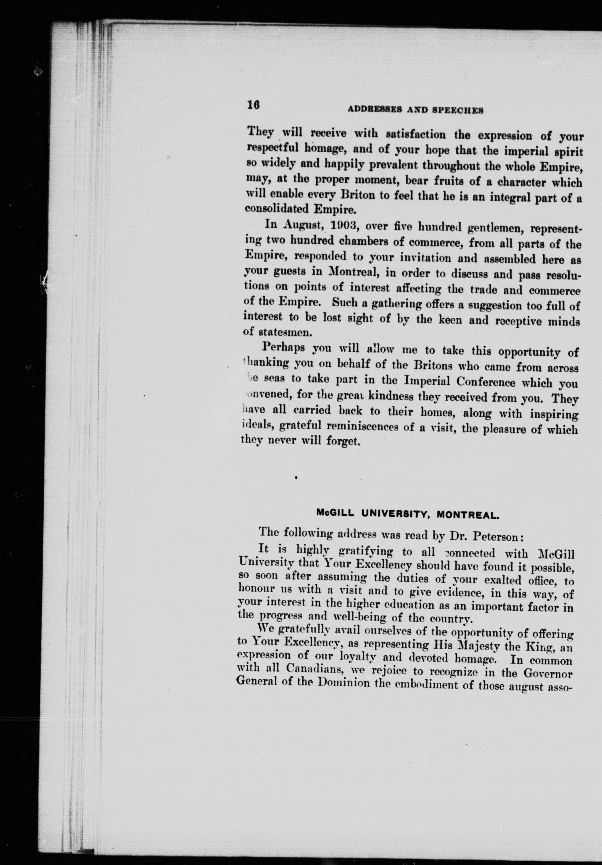 - Addresses to His Excellency Earl Grey, G.C.M.G., etc., Governor General of Canada, and his speeches in reply having relation to the resources and progress of the Dominion