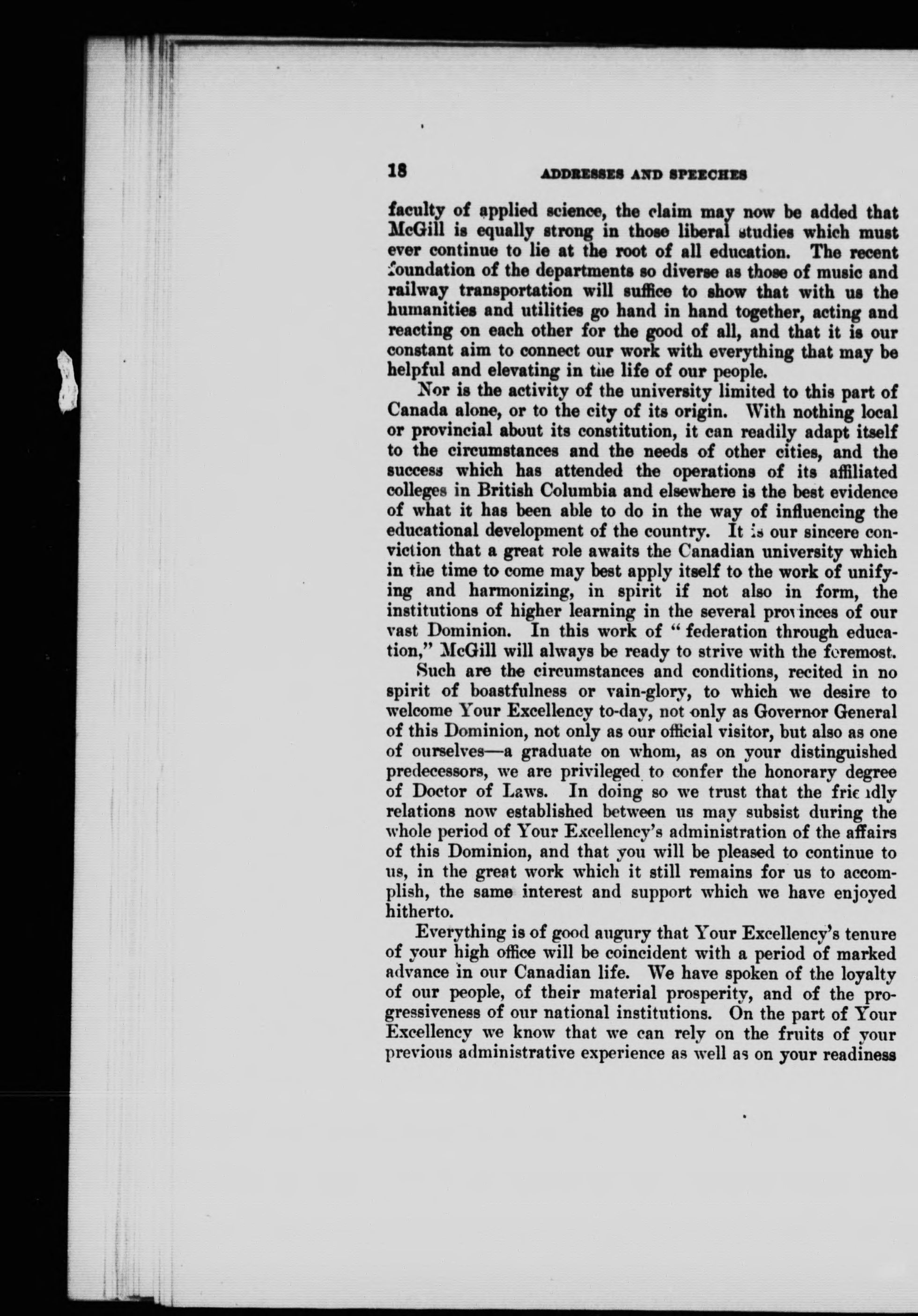 - Addresses to His Excellency Earl Grey, G.C.M.G., etc., Governor General of Canada, and his speeches in reply having relation to the resources and progress of the Dominion