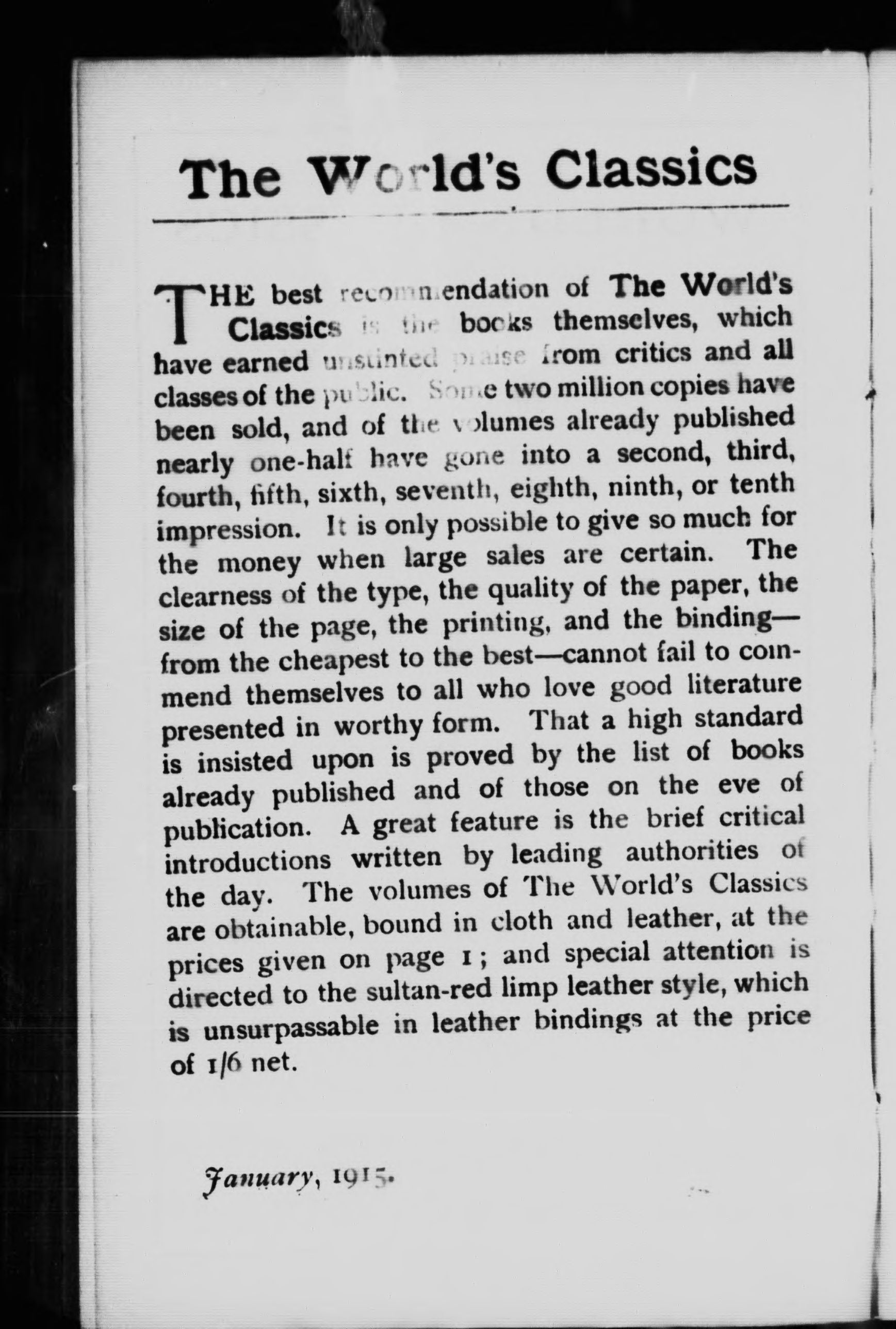 "First pub. in the "World's Classics" in 1914."--t.p. verso.