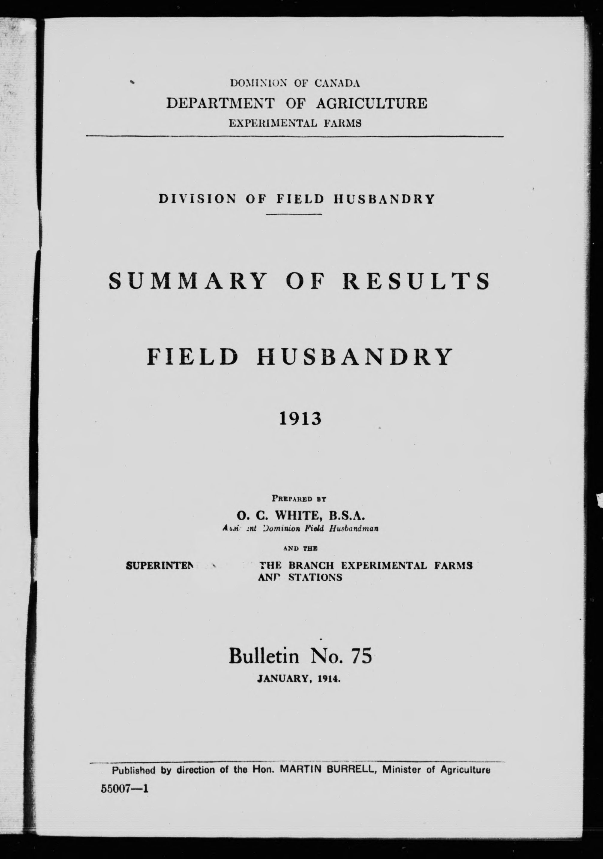 "Published by direction of the Hon. Martin Burrell, Minister of Agriculture."
