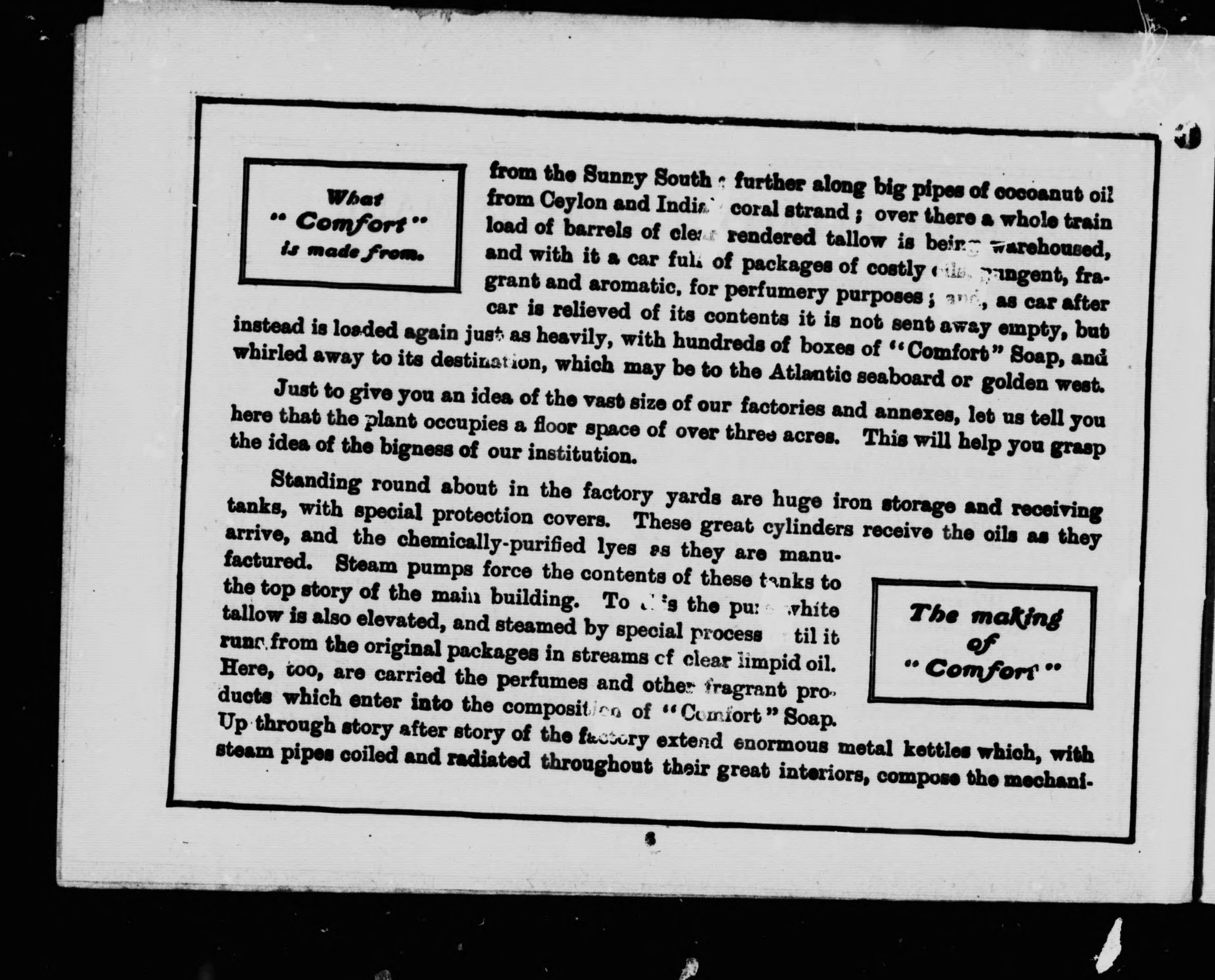 Lists items that can be purchased with "proof-of-purchase" labels from Comfort soap.