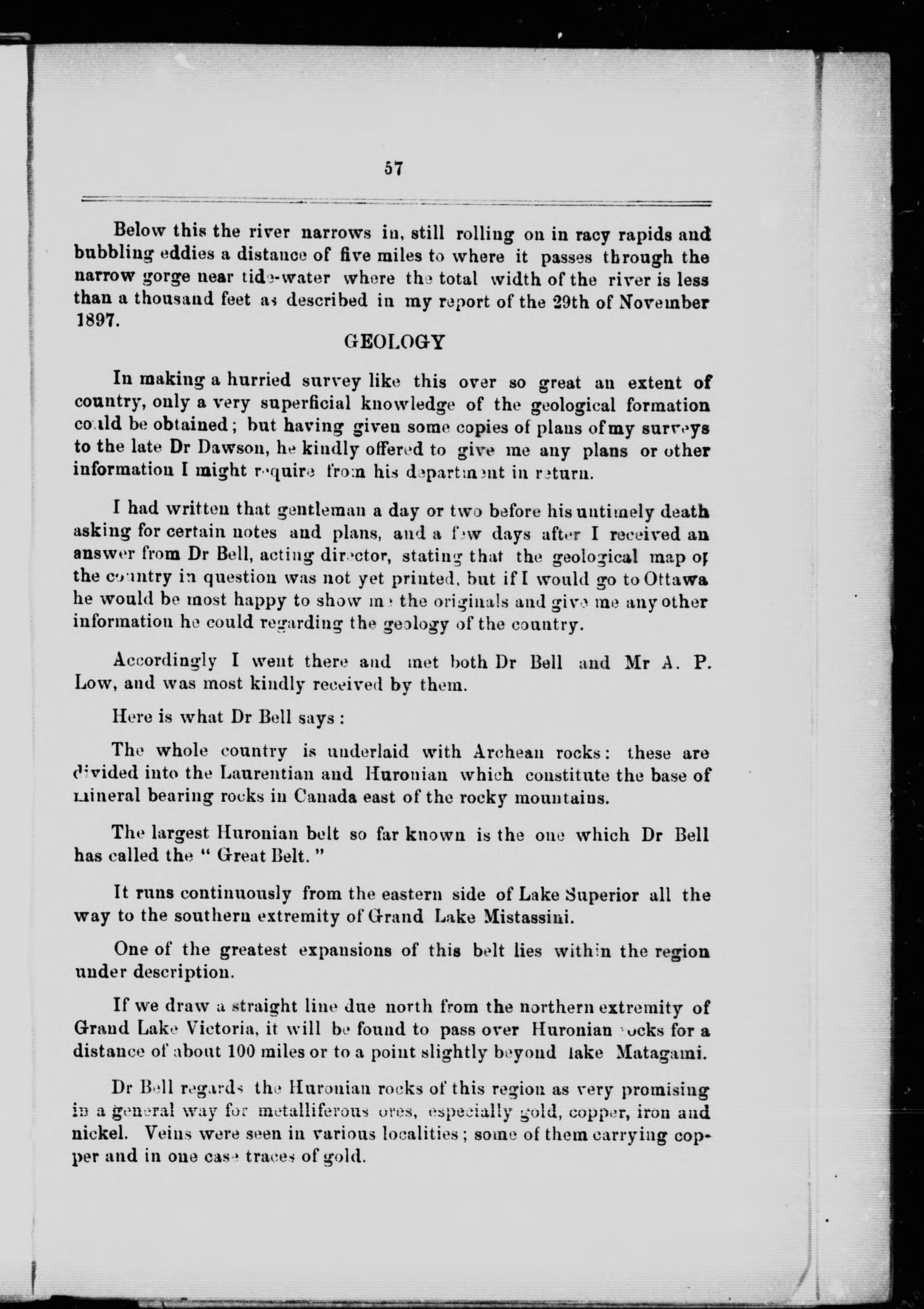 Second report of progress of exploration in the country between Lake St. John and James Bay : including the region of Lake Mistassini and the basins of the great Nottaway and Rupert rivers : together with a key plan to accompany remarks on the different proposed railways between Quebec and James Bay : made under instructions from the Department of Colonization and Mines, Quebec - Adresse bibliographique
