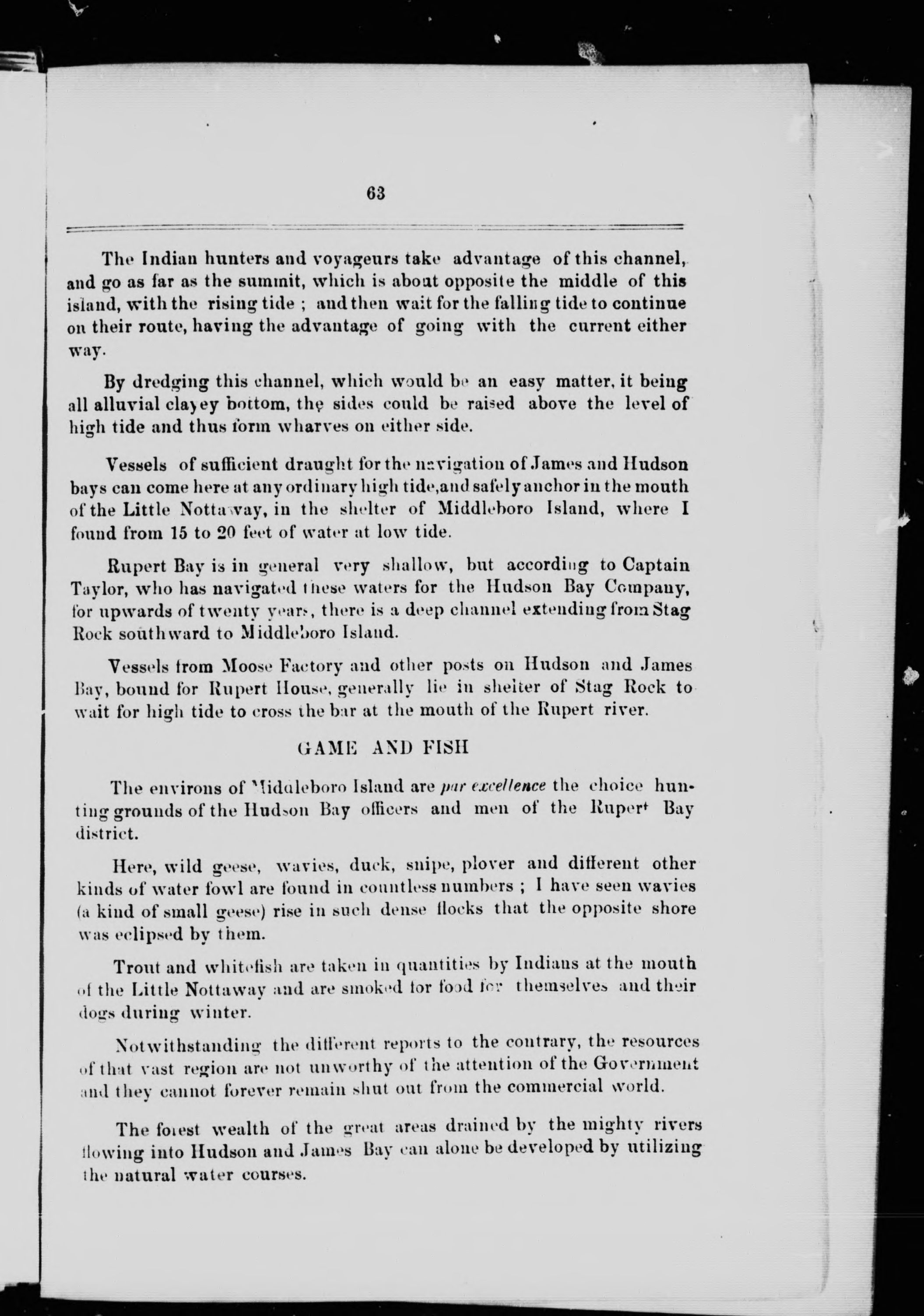 Second report of progress of exploration in the country between Lake St. John and James Bay : including the region of Lake Mistassini and the basins of the great Nottaway and Rupert rivers : together with a key plan to accompany remarks on the different proposed railways between Quebec and James Bay : made under instructions from the Department of Colonization and Mines, Quebec - Adresse bibliographique