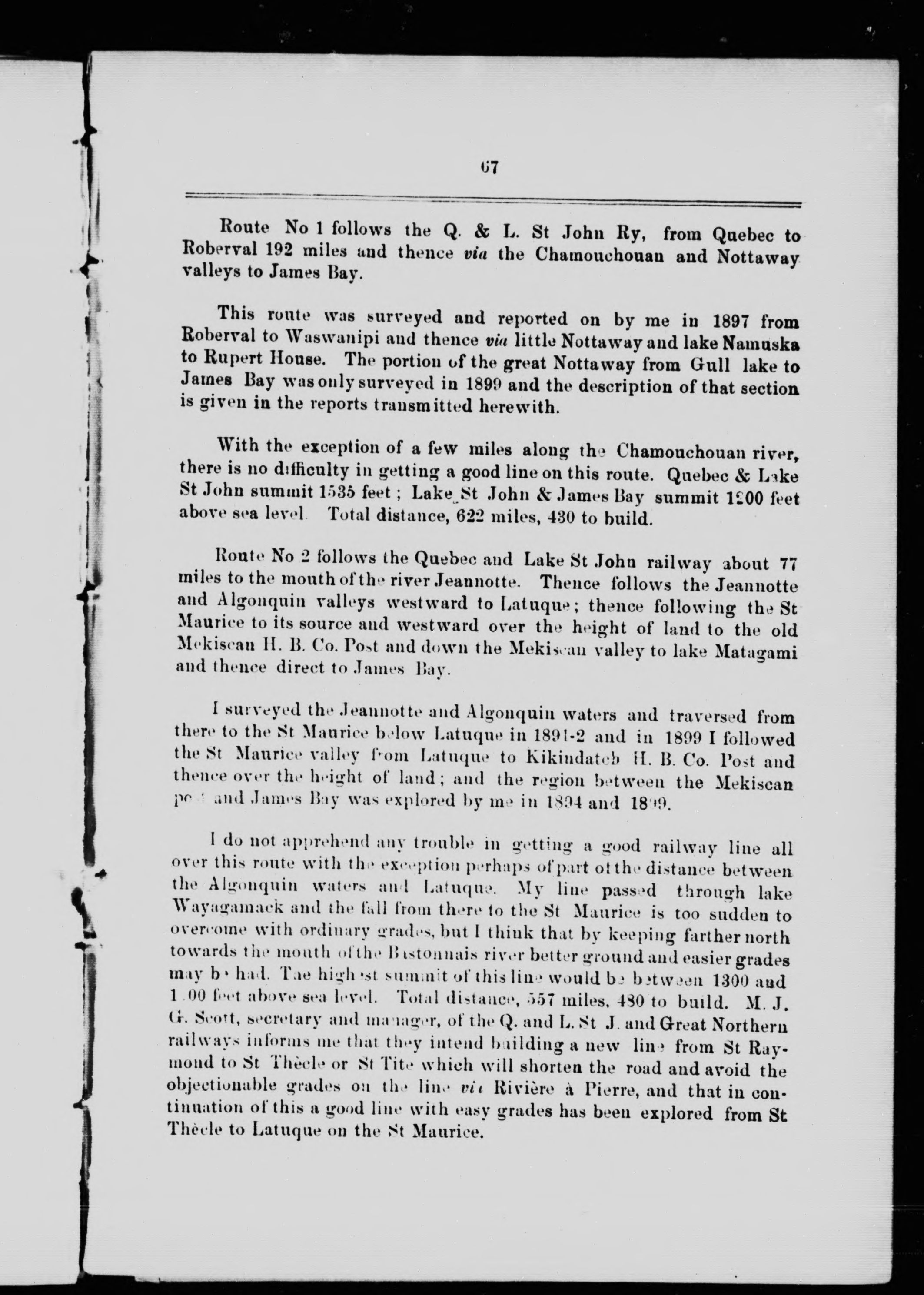 Second report of progress of exploration in the country between Lake St. John and James Bay : including the region of Lake Mistassini and the basins of the great Nottaway and Rupert rivers : together with a key plan to accompany remarks on the different proposed railways between Quebec and James Bay : made under instructions from the Department of Colonization and Mines, Quebec