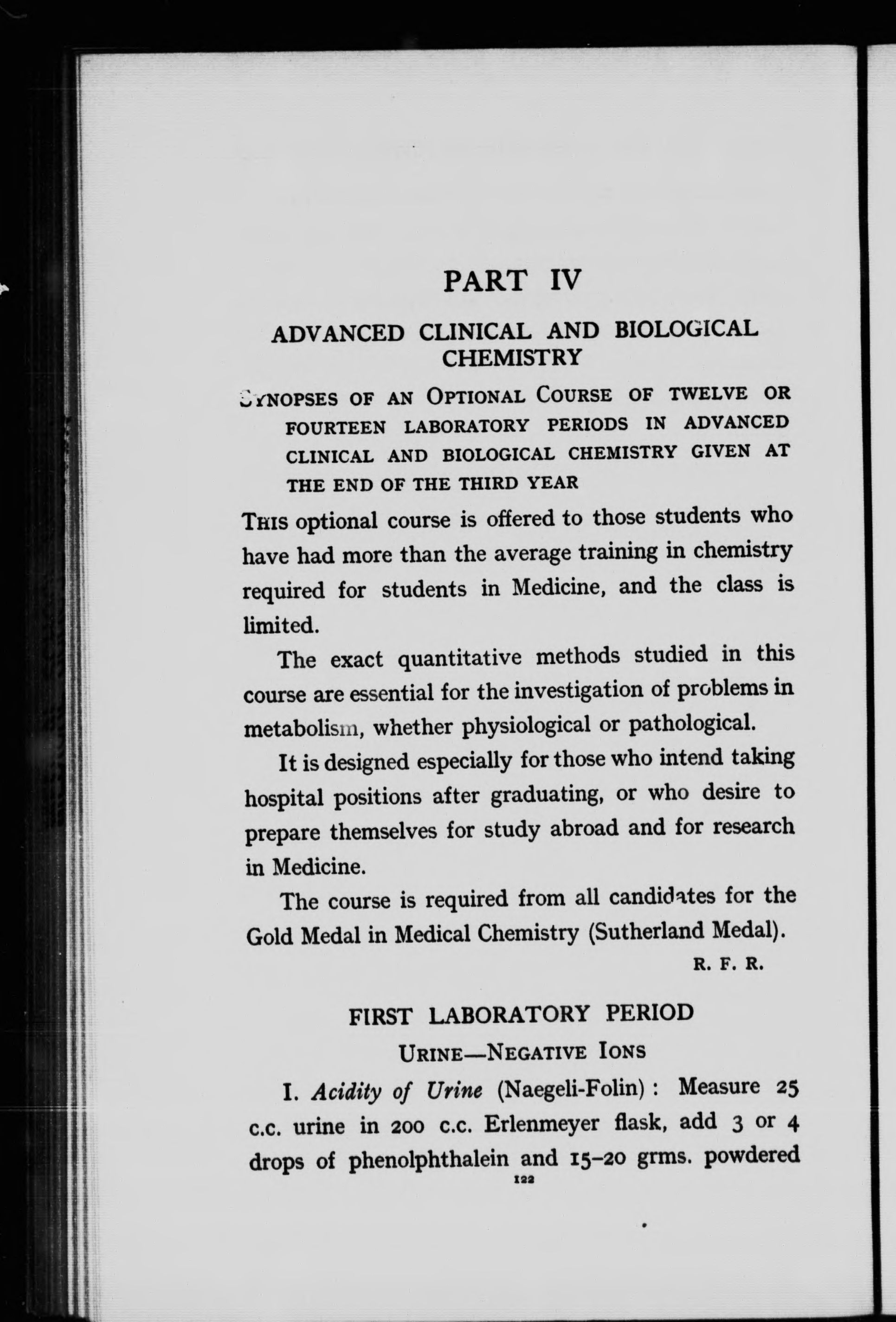 Synopses of laboratory courses in I. Organic and biological chemistry. II. Chemistry of human physiology. III. Clinical chemistry. IV. Advanced biological chemistry :