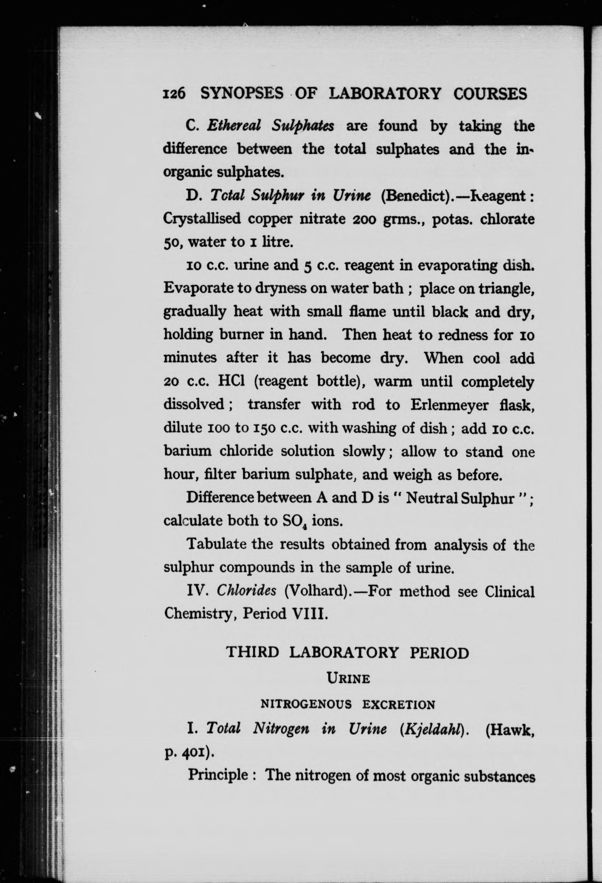 Synopses of laboratory courses in I. Organic and biological chemistry. II. Chemistry of human physiology. III. Clinical chemistry. IV. Advanced biological chemistry :
