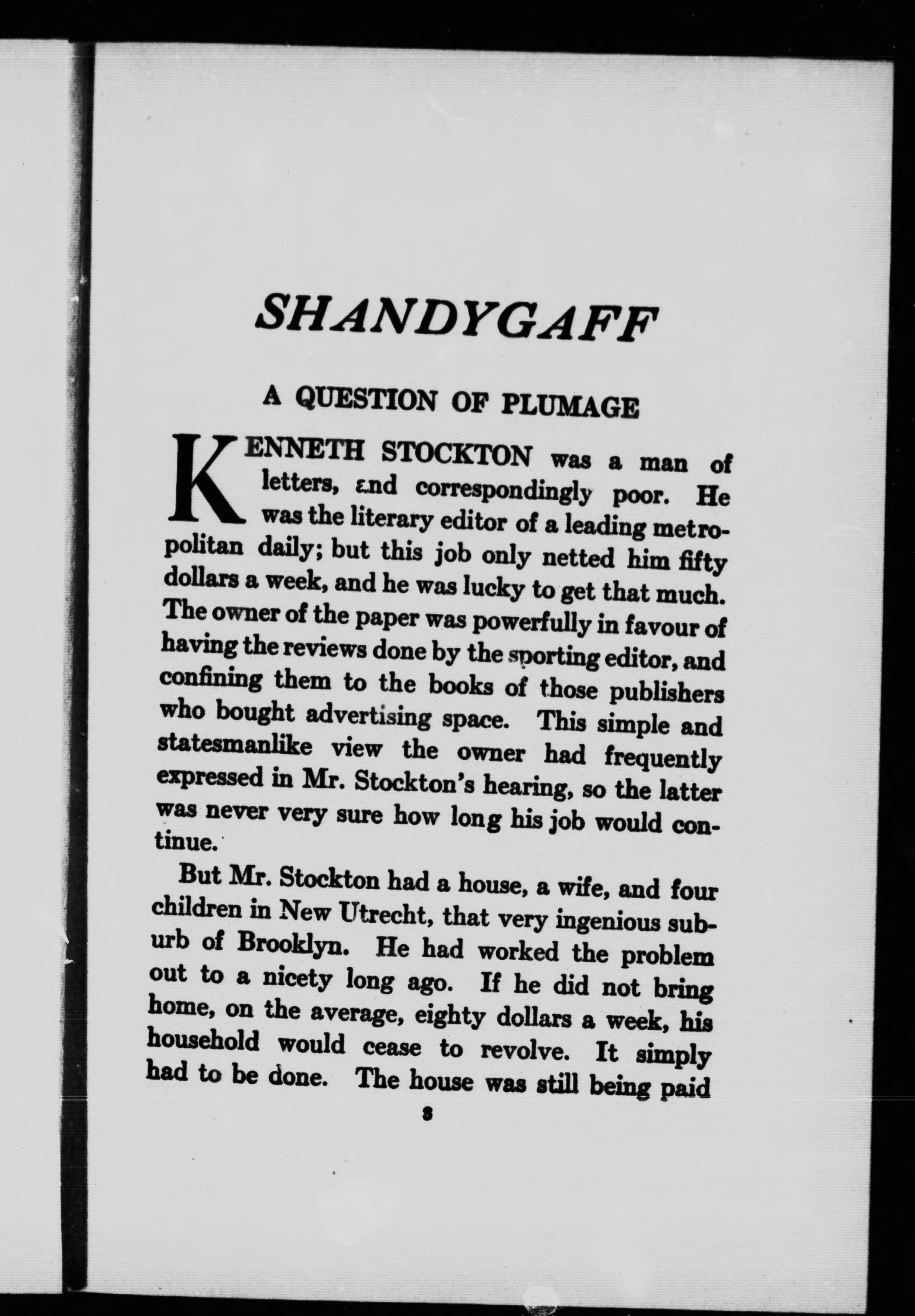Shandygaff : a number of most agreeable inquirendoes upon life and letters, interspersed with short stories and skitts, the whole most diverting to the reader : accompanied also by some notes for teachers whereby the booke may be made useful in class-room or for private improvement