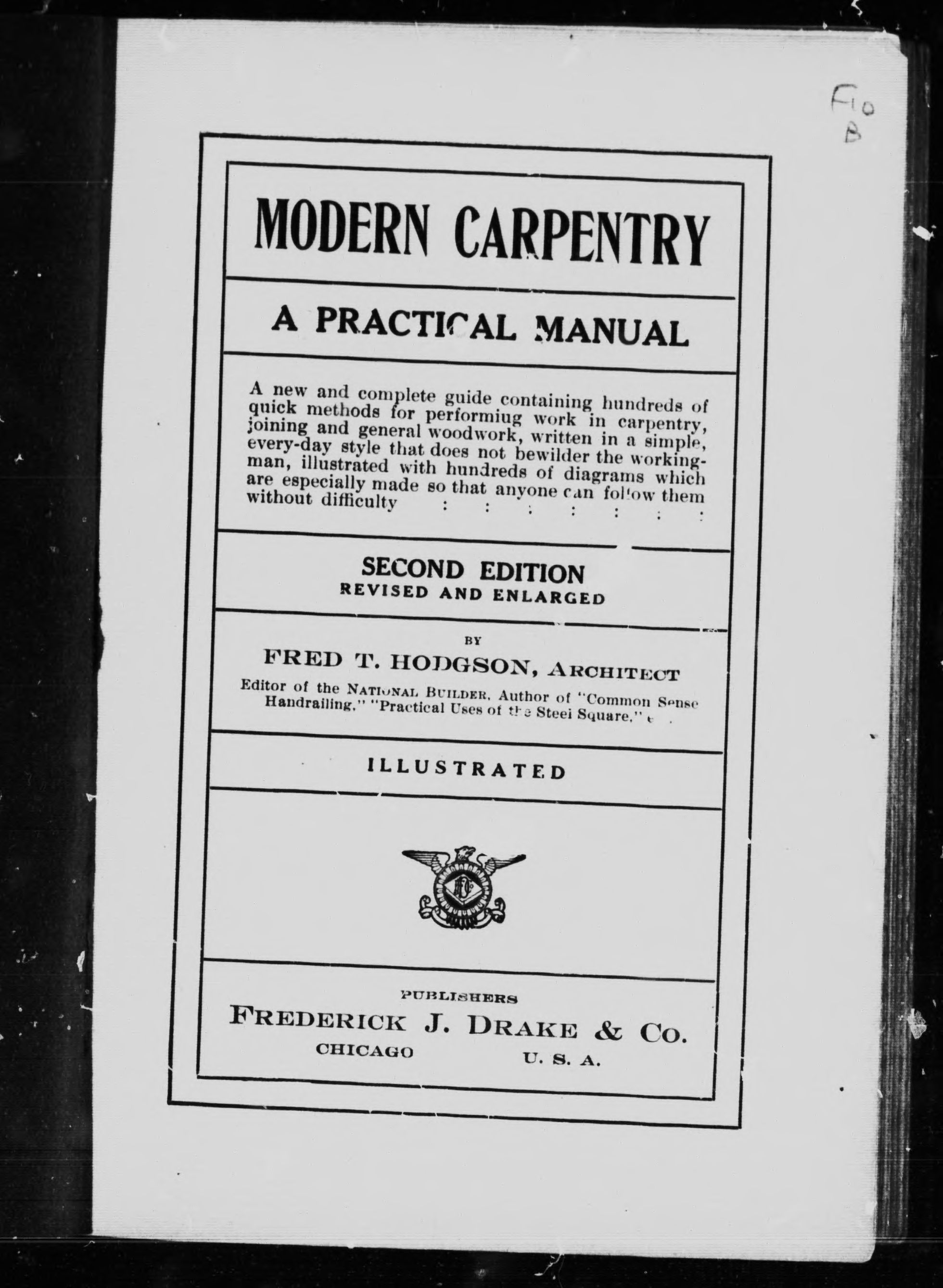 Modern carpentry : a new and complete guide containing hundreds of quick methods of performing work in carpentry, joining and general woodwork : written in a simple, everyday style that does not bewilder the workingman : illustrated with hundreds of diagrams which are especially made so that anyone can follow them without difficulty