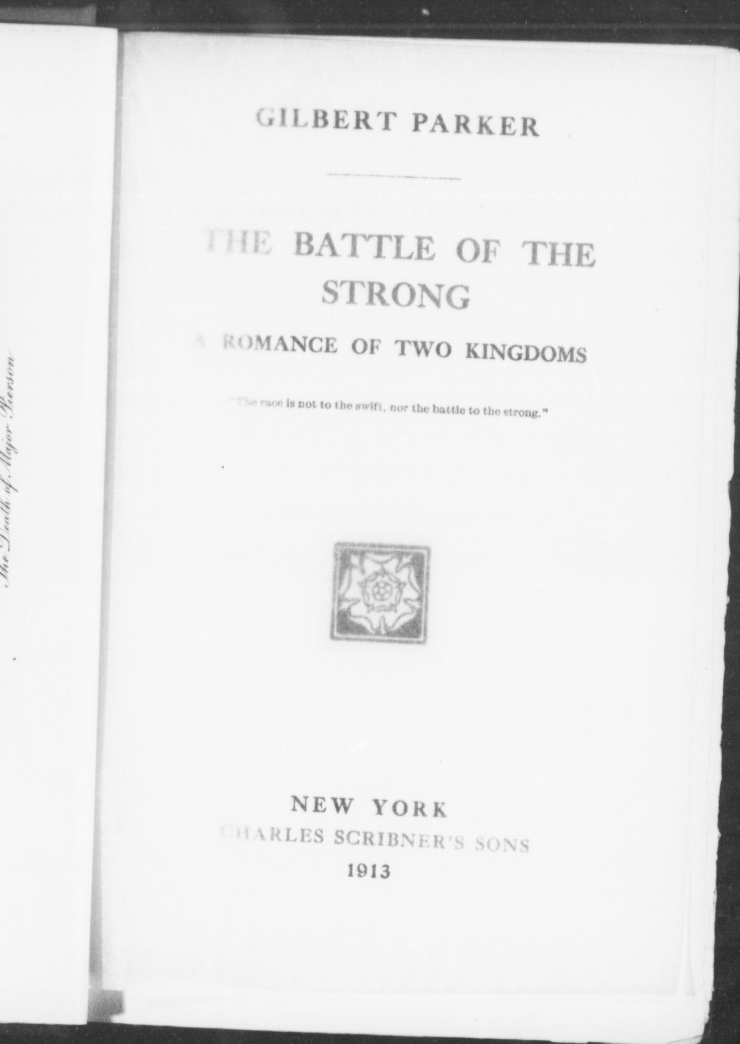 Added title page title: Battle of the strong : a romance of two kingdoms.