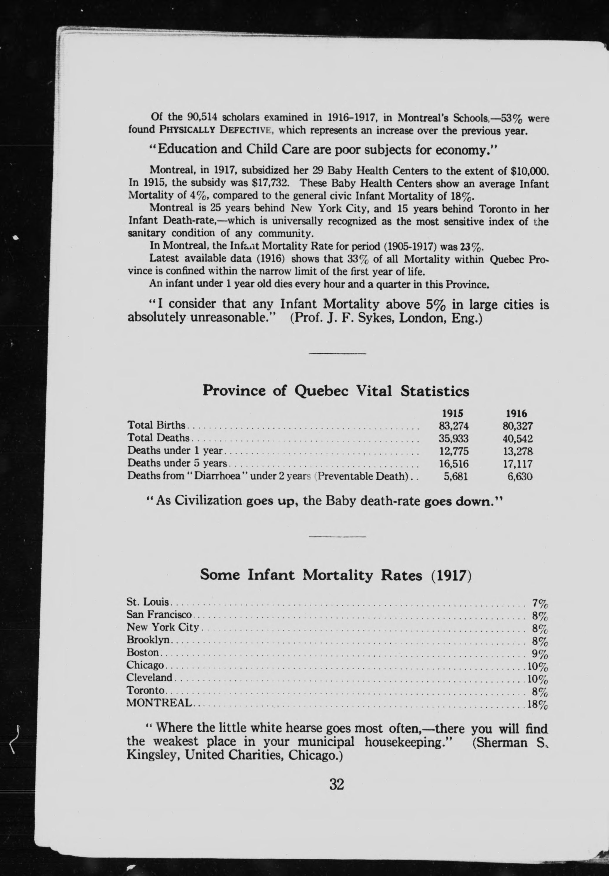 Nourrissons -- Québec (Province) -- Montréal -- Mortalité. - Document original