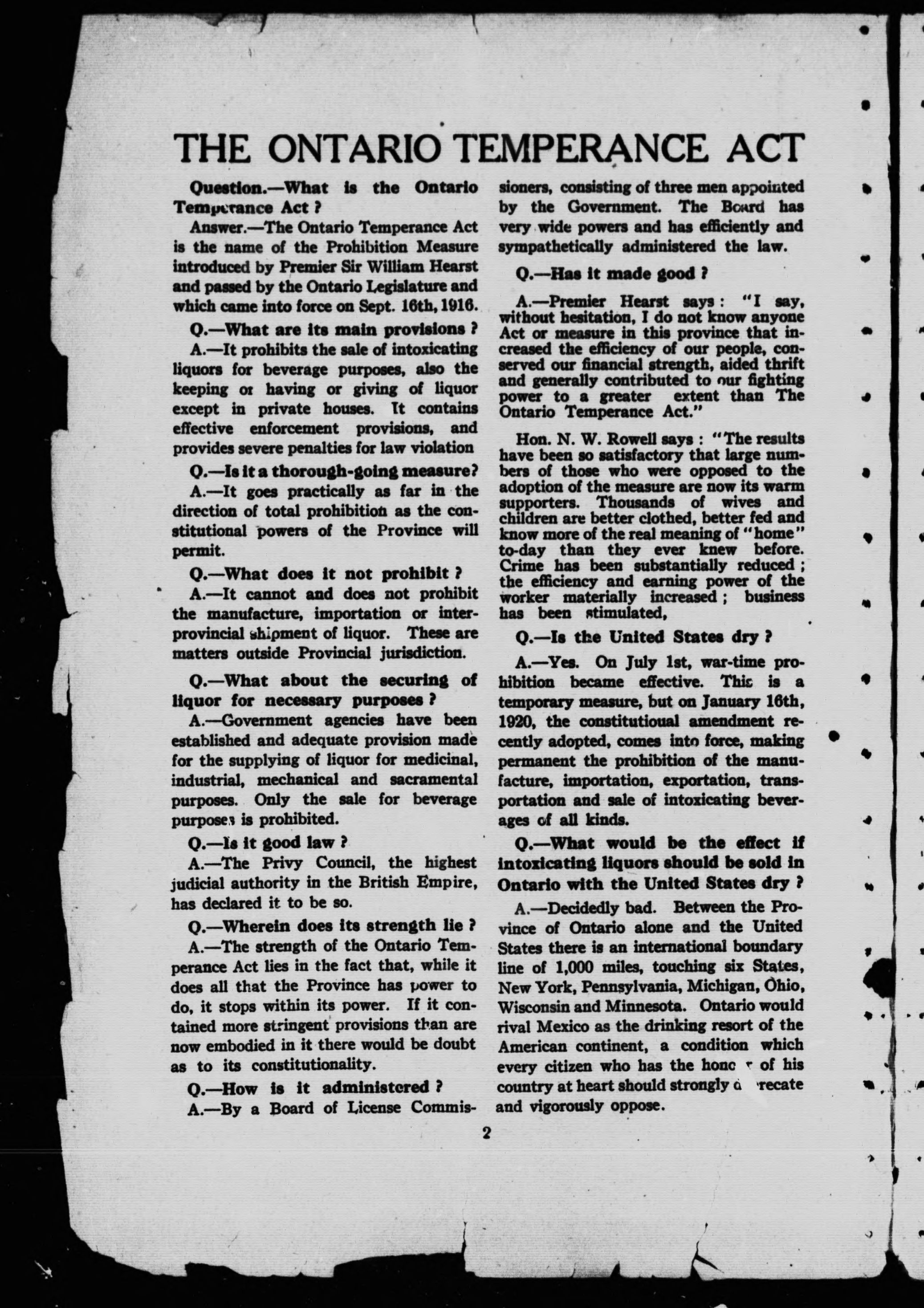 Prohibition -- Ontario.