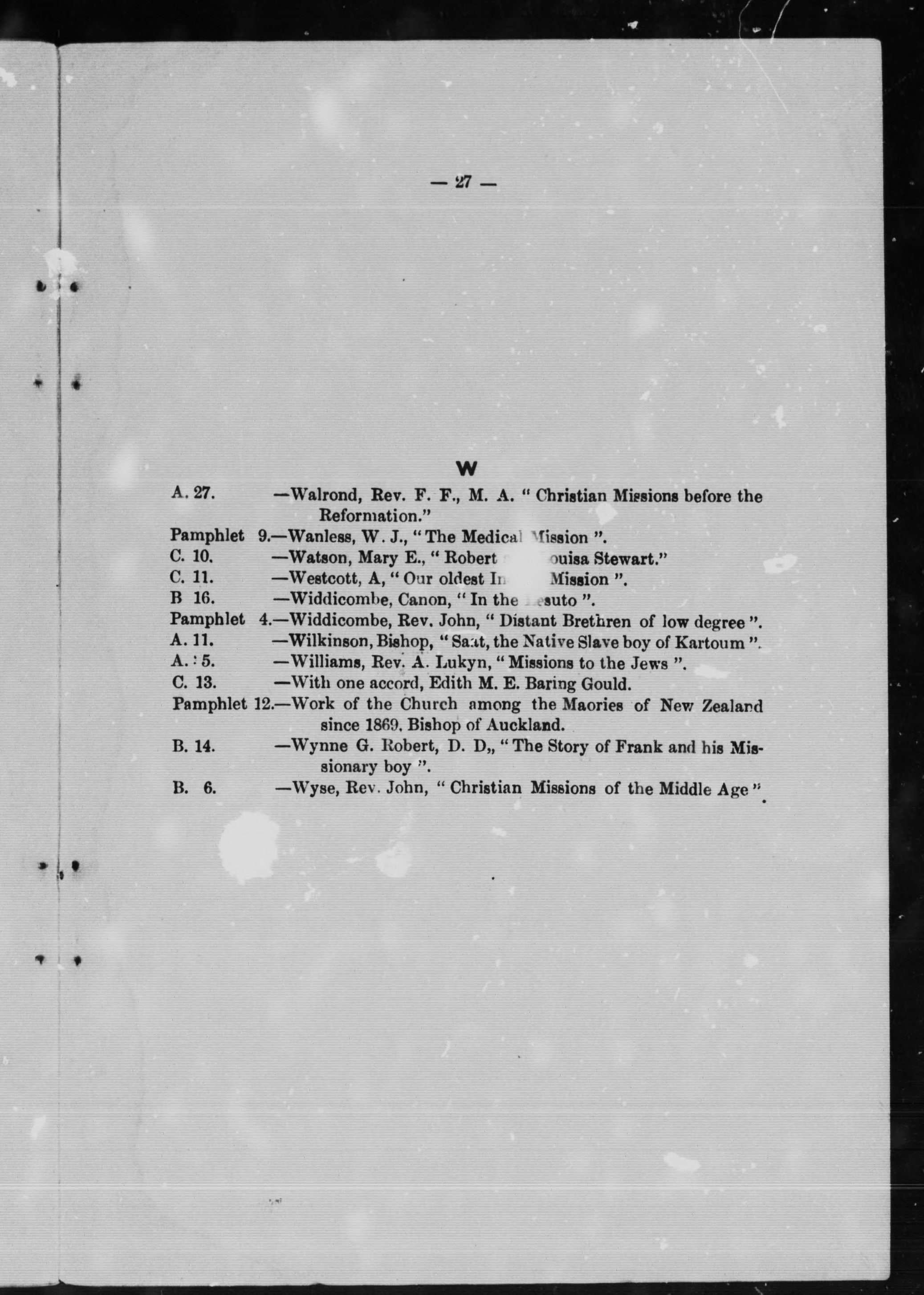 Catalogue of the missionary library of the Quebec Diocesan Branch of the Woman's Auxiliary to the Missionary Society of the Church of England in Canada.
