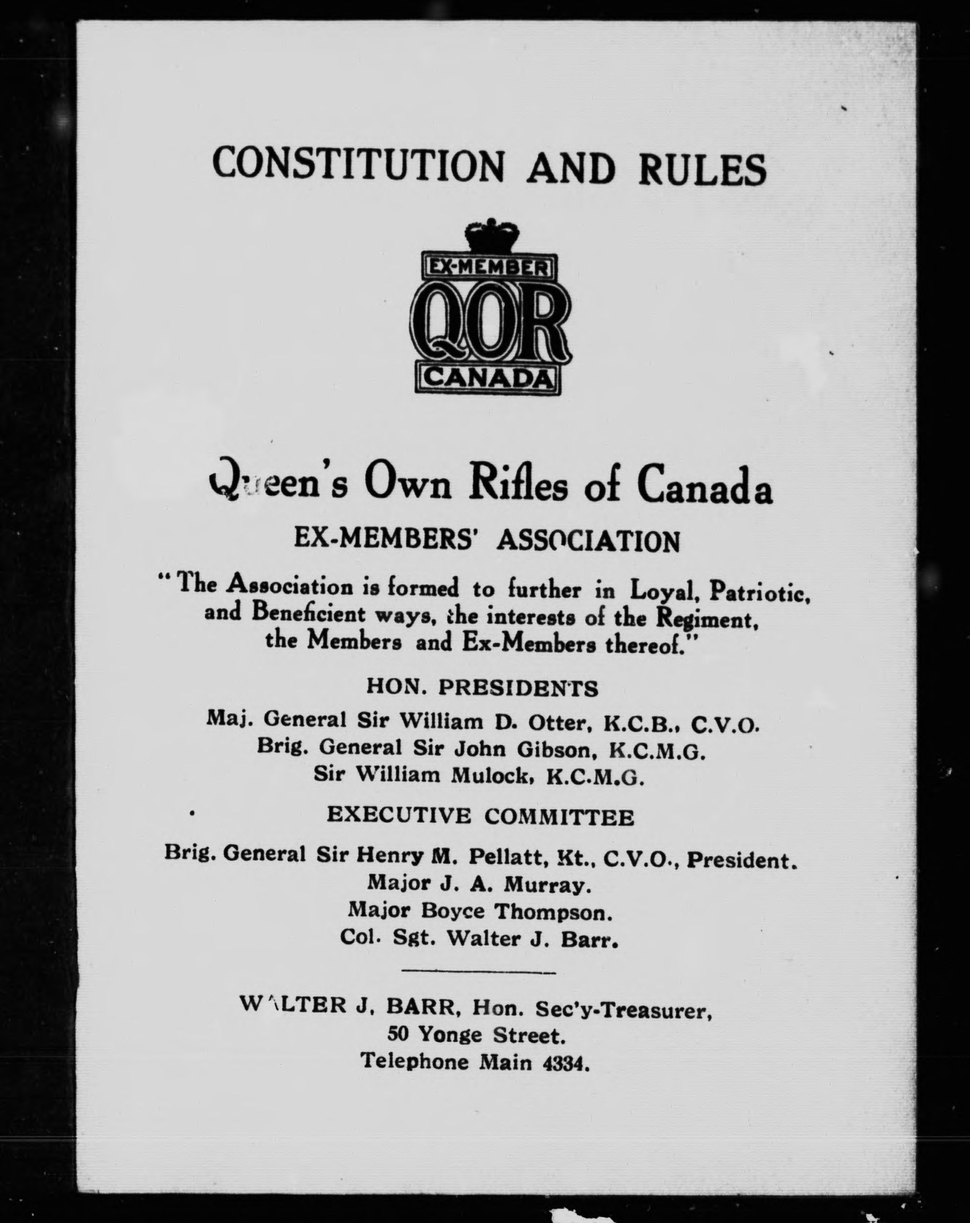 Queen's Own Rifles of Canada. Ex-Member's Association -- Constitution.