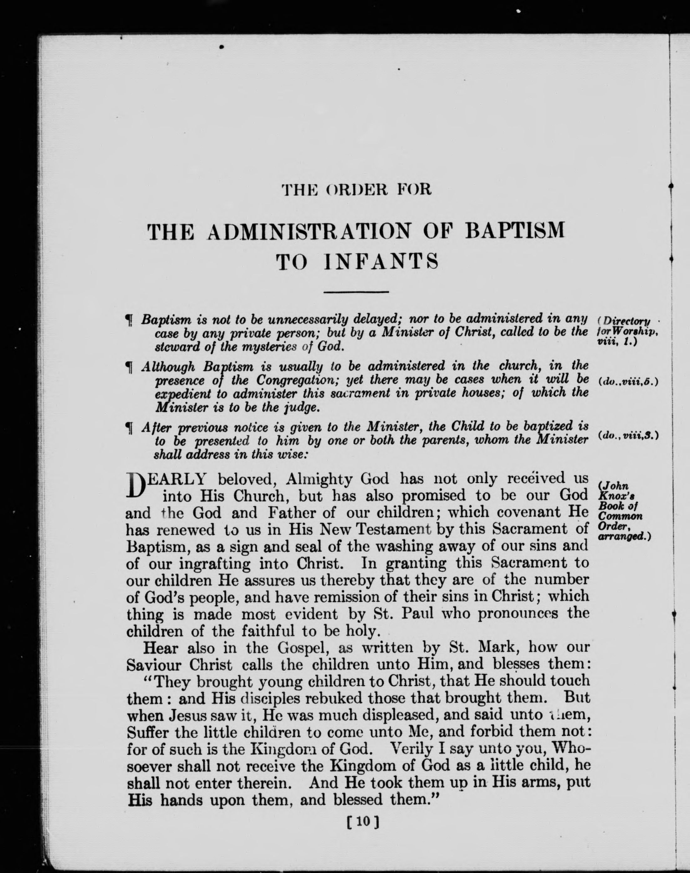 Culte public -- Église presbytérienne.