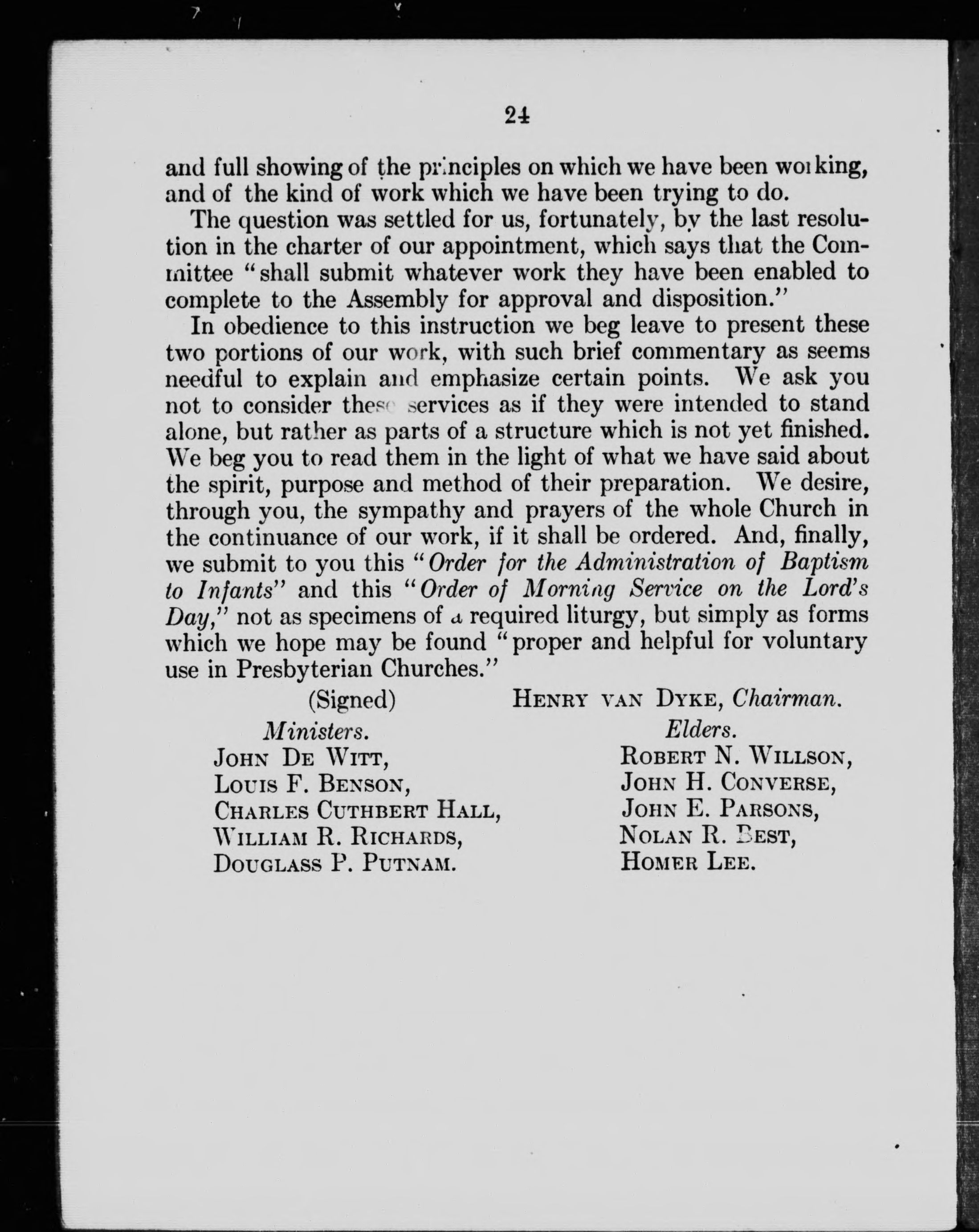 Forms and services : being the partial report of the Special Committee on Forms and Services as approved by the General Assembly.