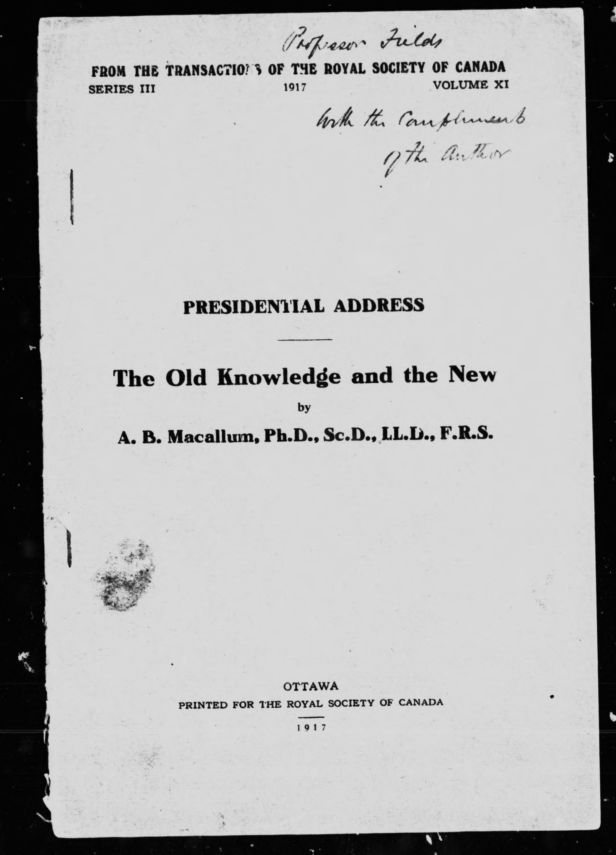 Ottawa : Printed for the Royal Society of Canada, 1917.; 20 images, 19 with full-text search
