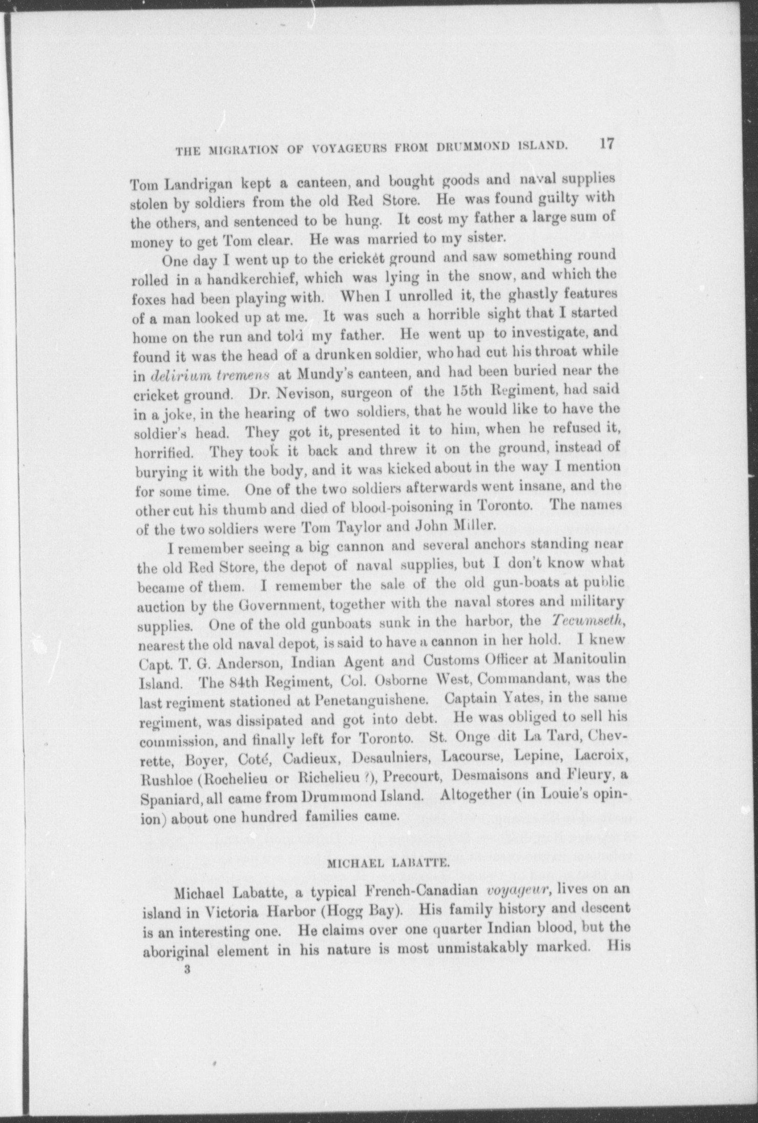The Migration of Voyageurs From Drummond Island to Penetanguishene in 1828 /
