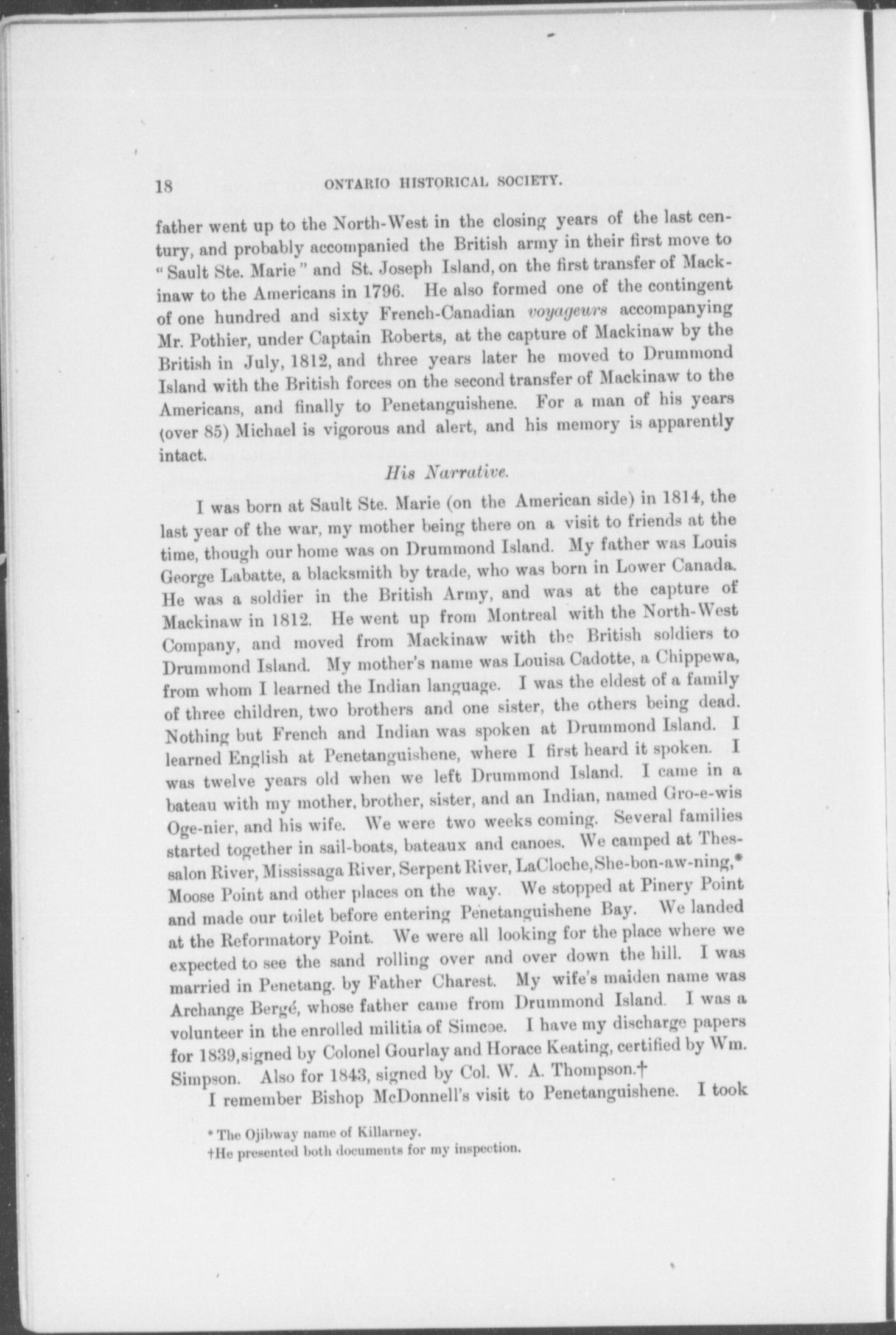 The Migration of Voyageurs From Drummond Island to Penetanguishene in 1828 /