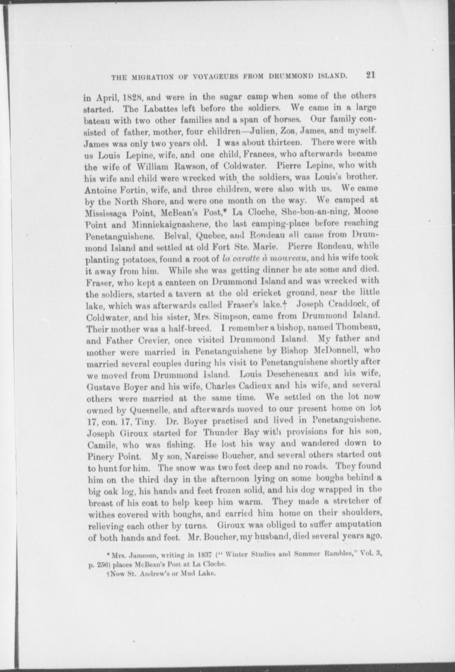 - The Migration of Voyageurs From Drummond Island to Penetanguishene in 1828