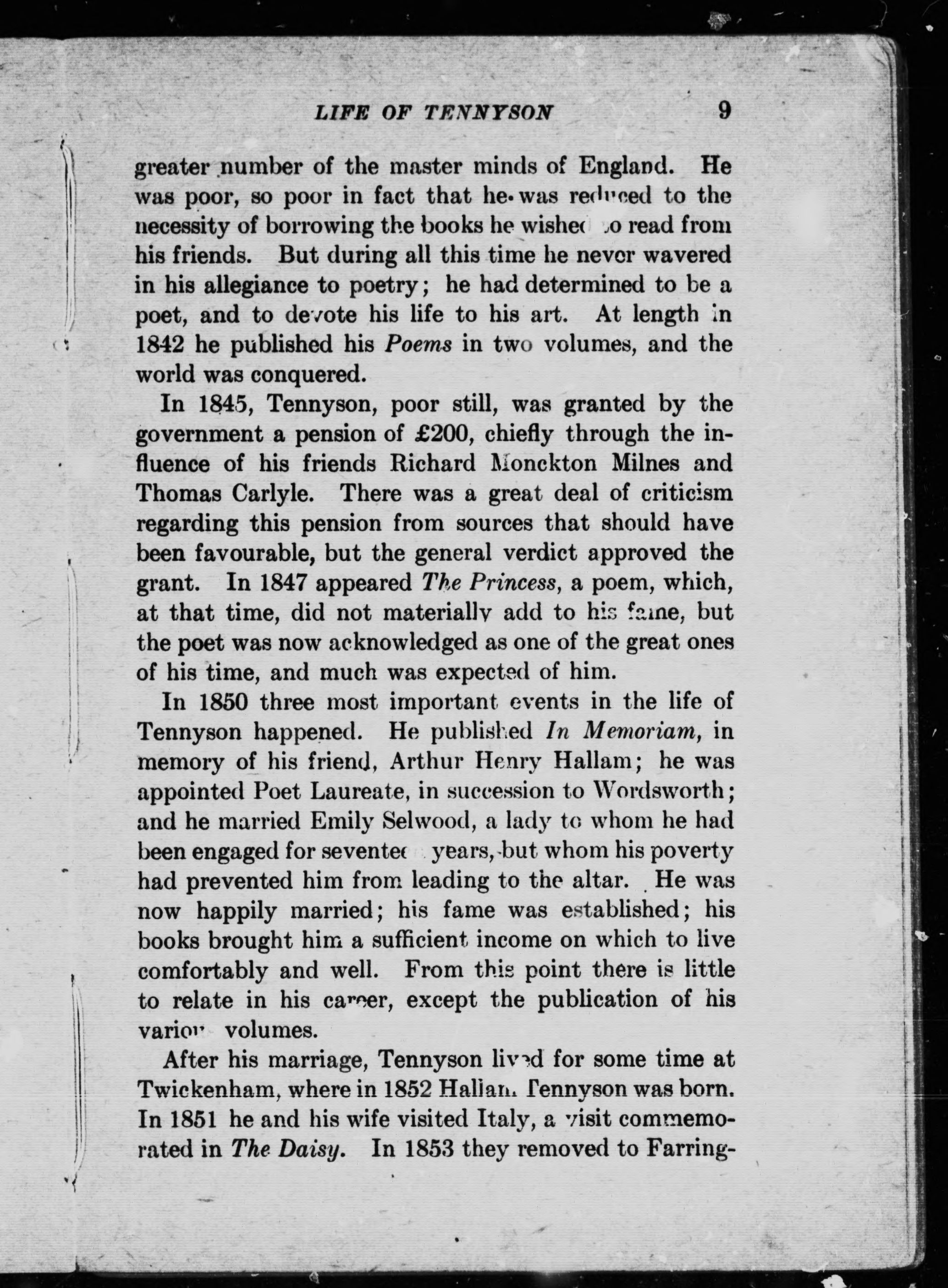 Tennyson, Alfred Tennyson, Baron, 1809-1892., author