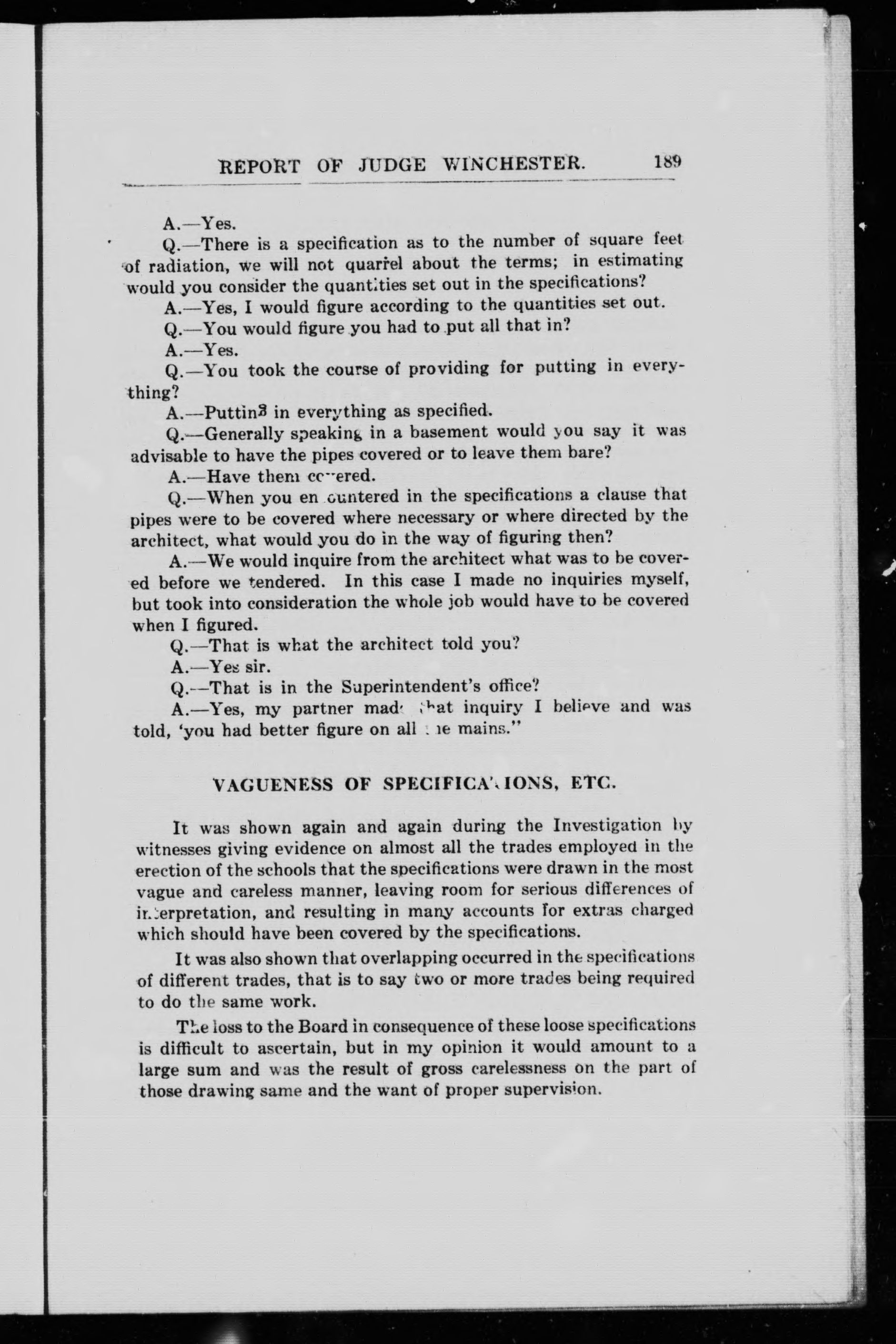 Investigation, Board of Education contracts ; report of Judge Winchester.