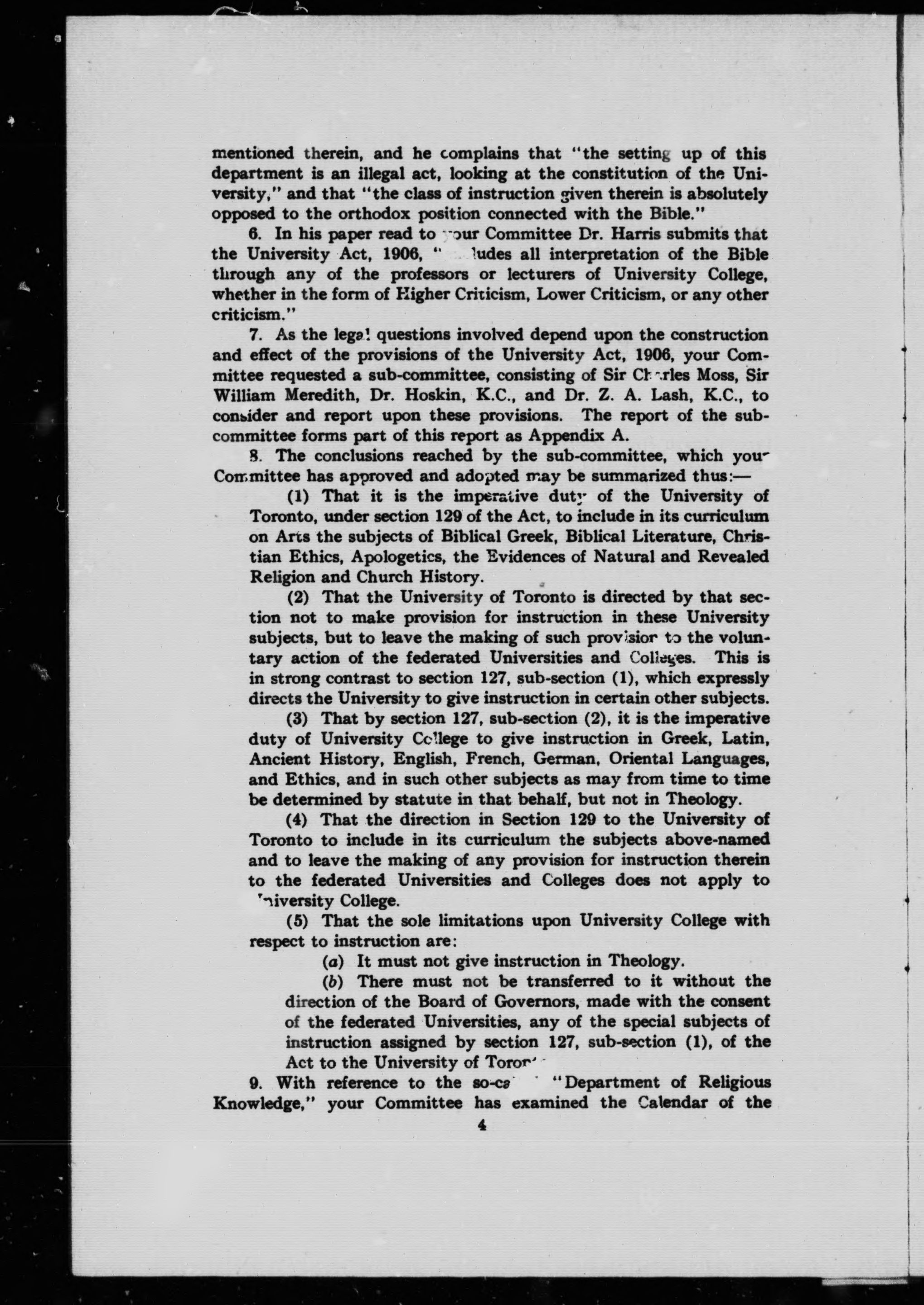 The Special Committee was appointed to investigate and report upon the complaints made with respect to the Dept. of Religious Knowledge at U. of T. and to the alleged teaching of religious knowledge in University College. See CIHM numbers 75093: The teaching of religious knowledge in University College ultra vires / by Samuel Hume Blake.