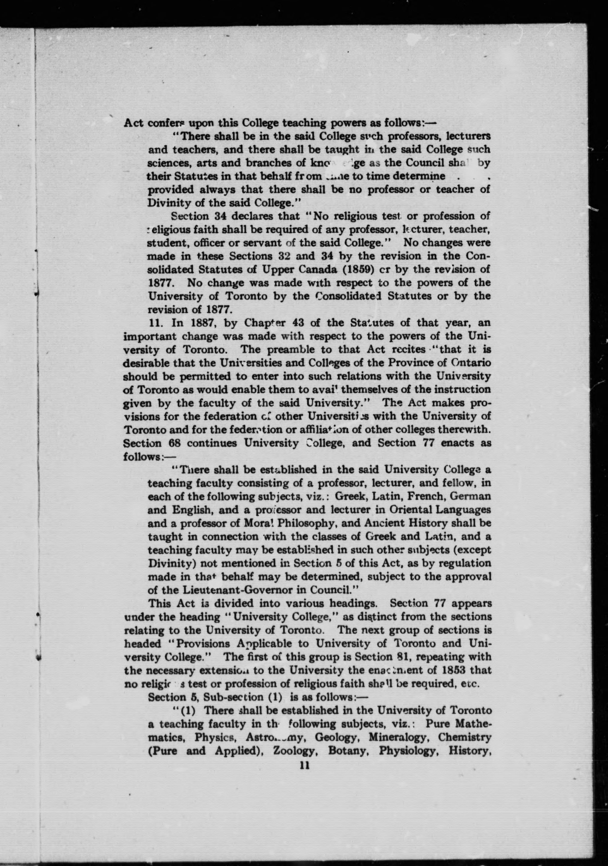 The Special Committee was appointed to investigate and report upon the complaints made with respect to the Dept. of Religious Knowledge at U. of T. and to the alleged teaching of religious knowledge in University College. See CIHM numbers 75093: The teaching of religious knowledge in University College ultra vires / by Samuel Hume Blake.