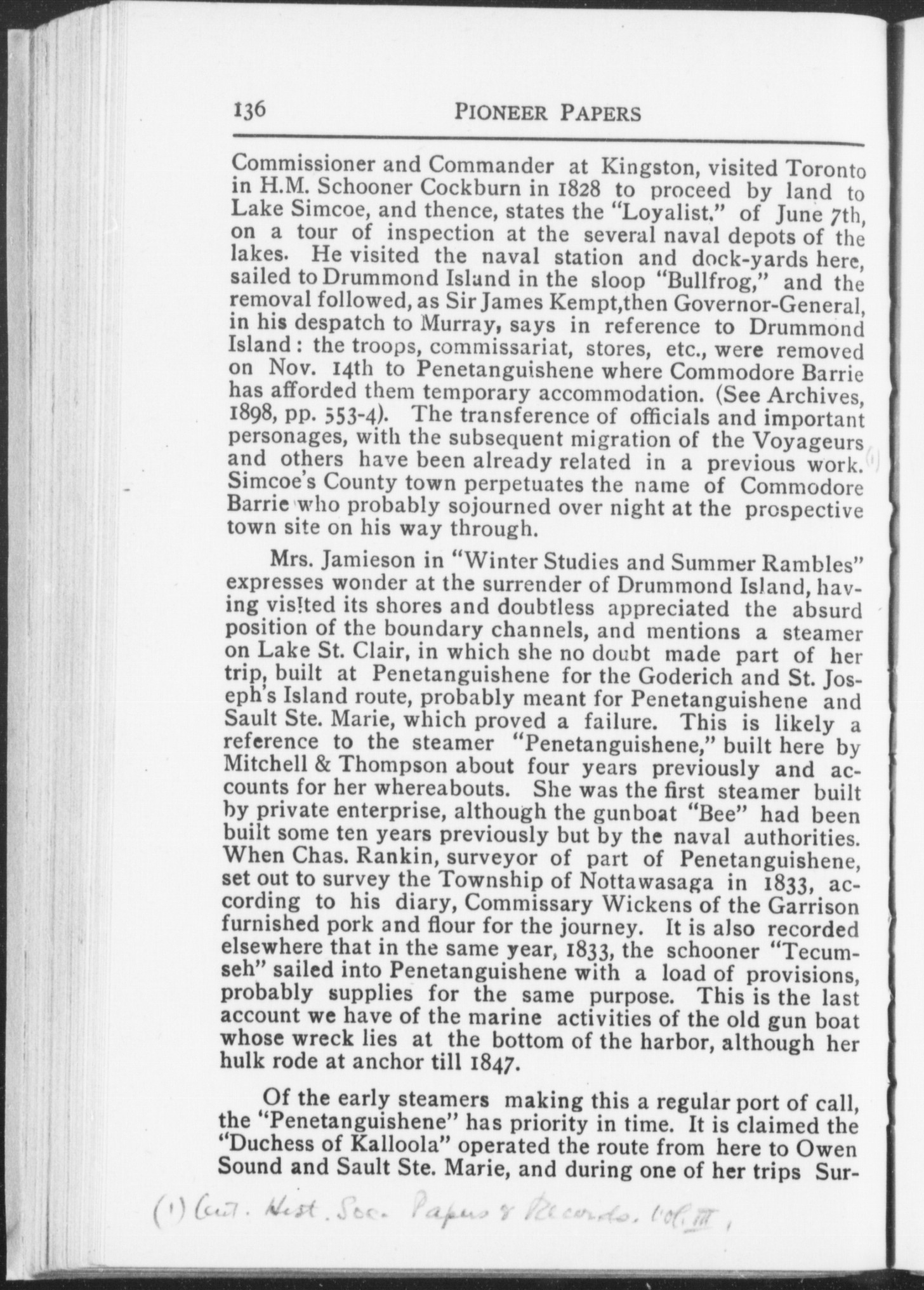 Old Penetanguishene : sketches of its pioneer, naval and military days [cont'd] - Adresse bibliographique