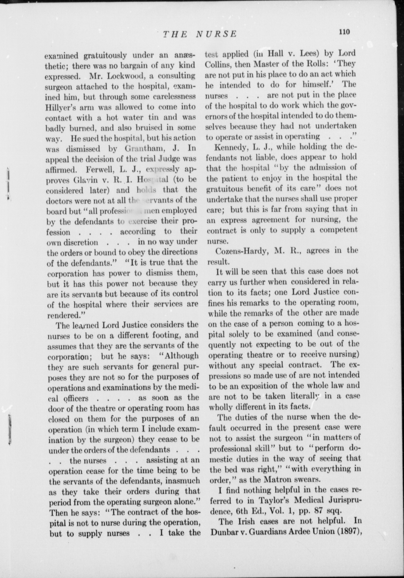 Liability of Hospital for Negligence of a Nurse : Judgment of The Honorable Mr. Justice Riddell, (Supreme Court of Ontario), in Levere v. Smith's Falls Hospital - Adresse bibliographique