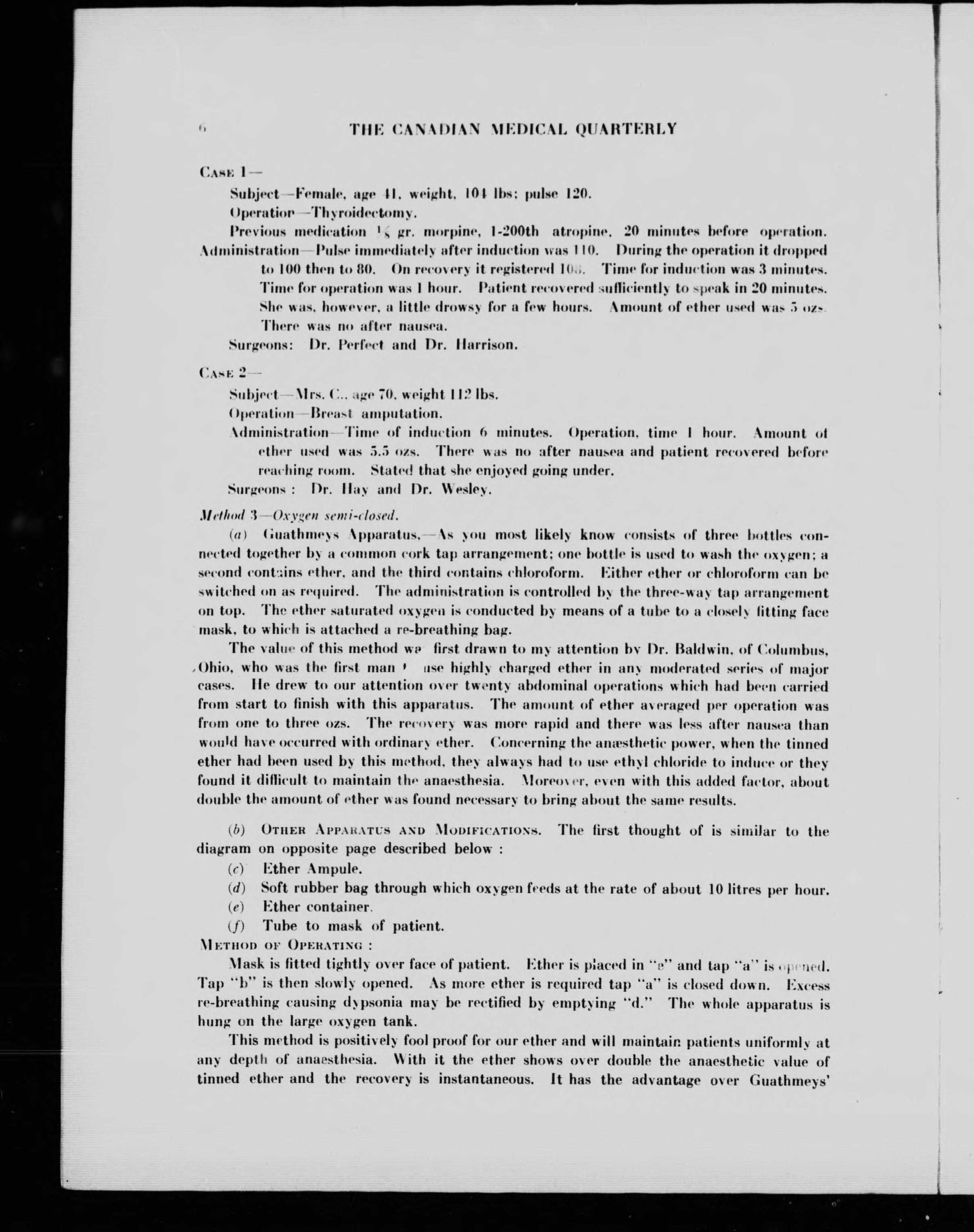 - Cotton process ether and ether analgesia