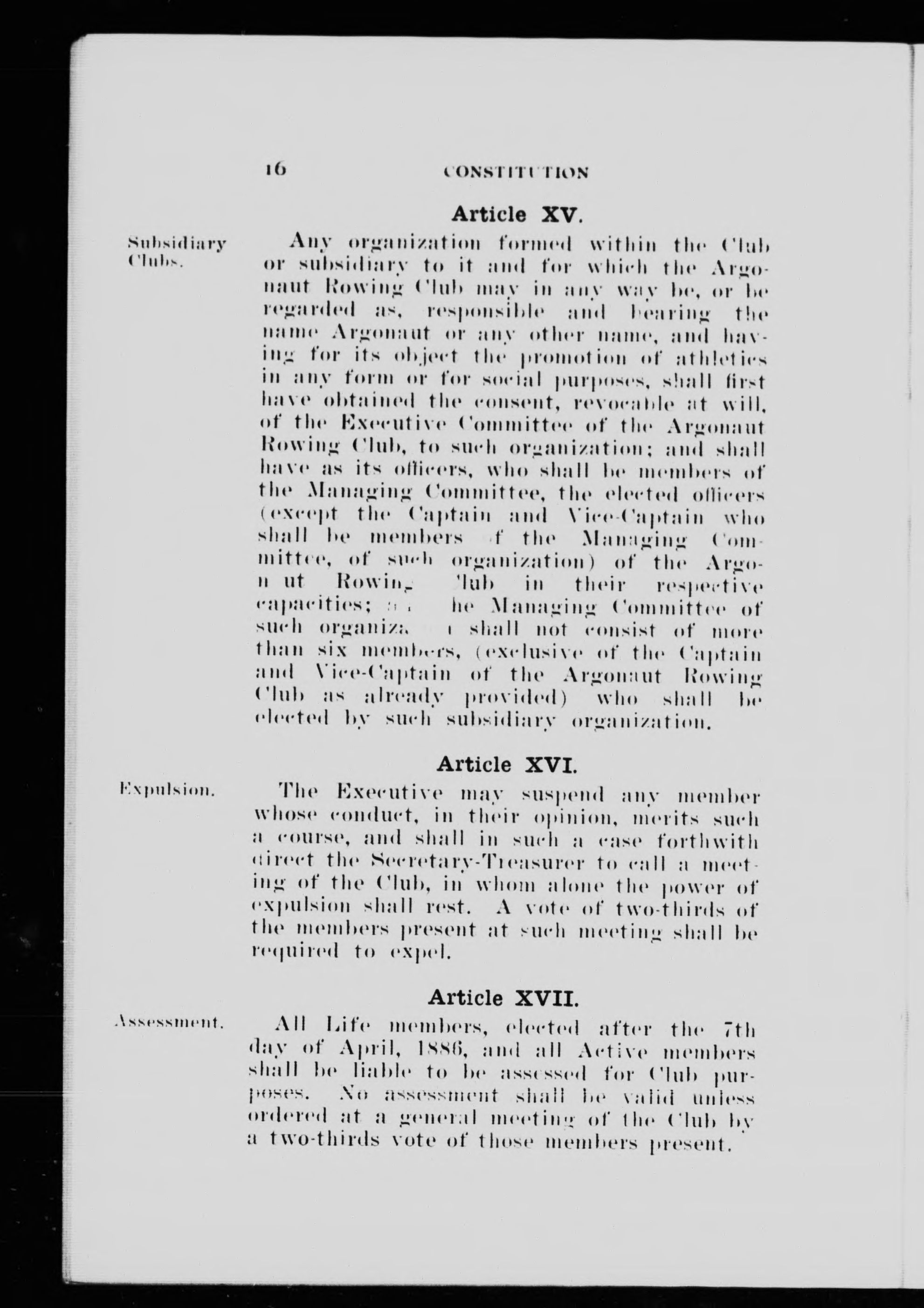 Argonaut Rowing Club -- Constitution.