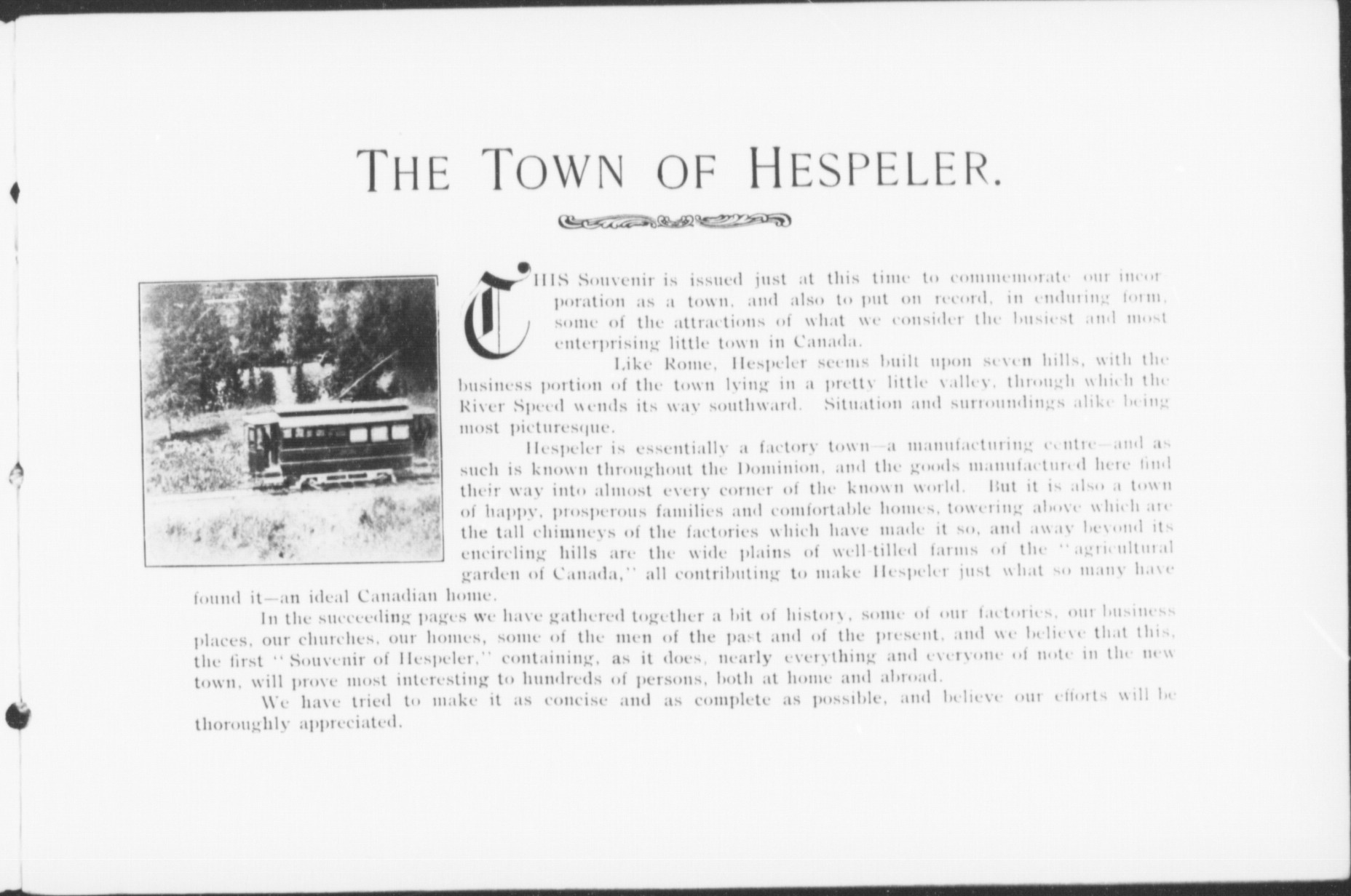 Cover title: Town of Hespeler, incorporation souvenir, 1901.