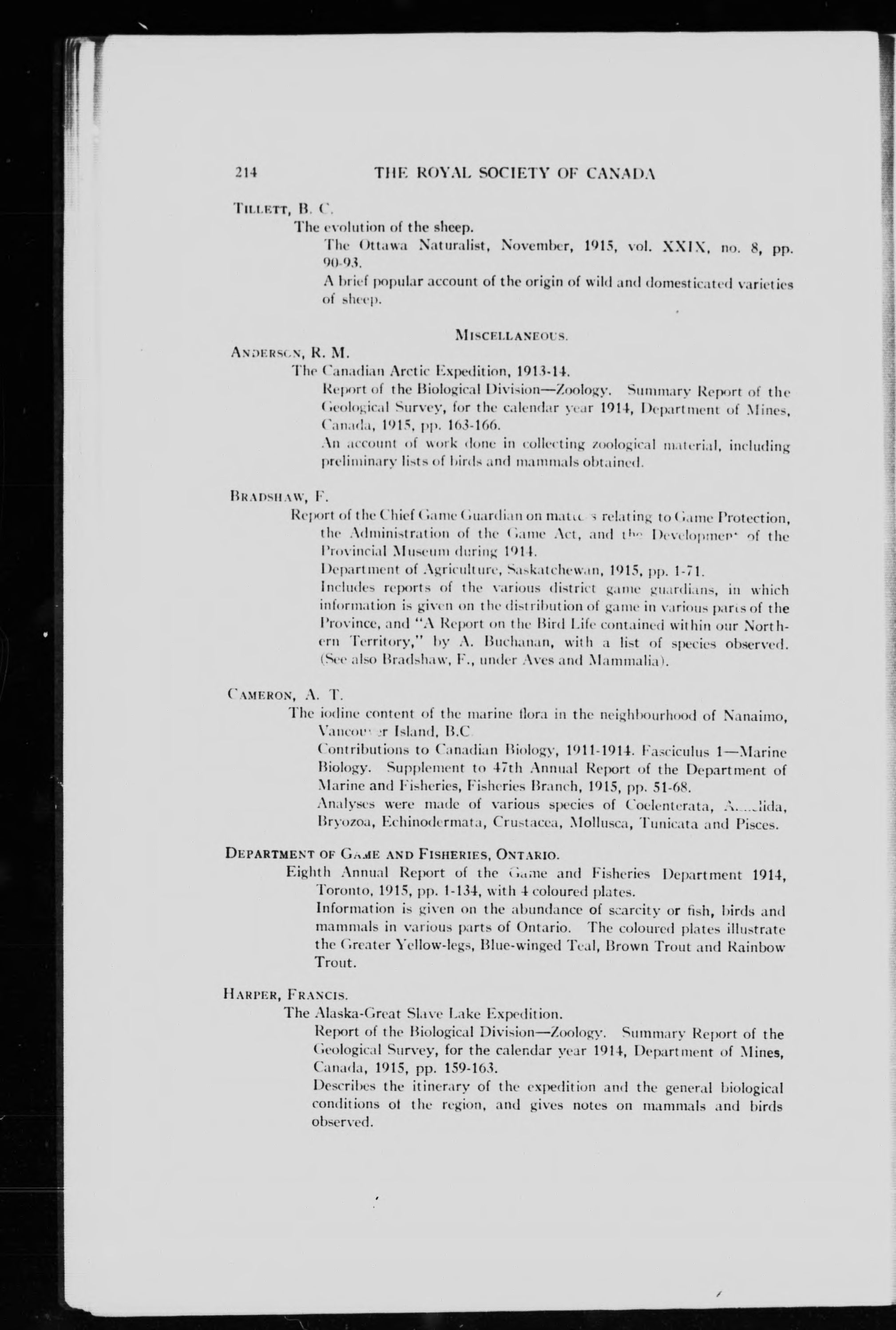 At head of title: From the Transactions of the Royal Society of Canada, Series III, 1916, Volume X.