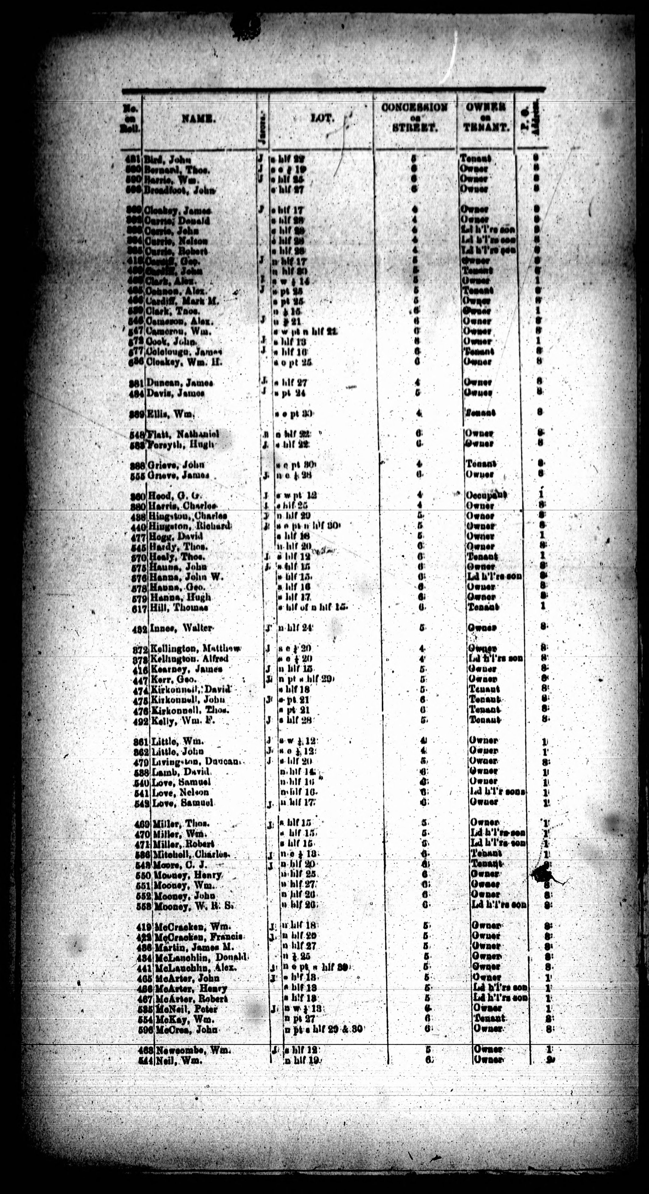 Voters' list, 1887, municipality of Morris.